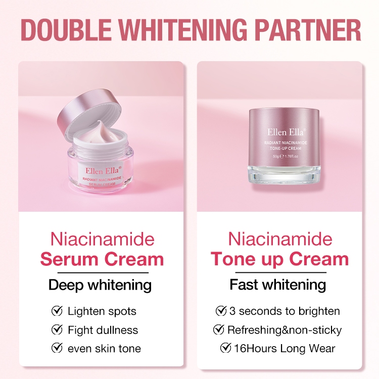ELLEN ELLA Whitening Cream Set 2pcs 3 IN 1Tone Up Cream SPF Niacinamide Serum Cream Glowing Cream