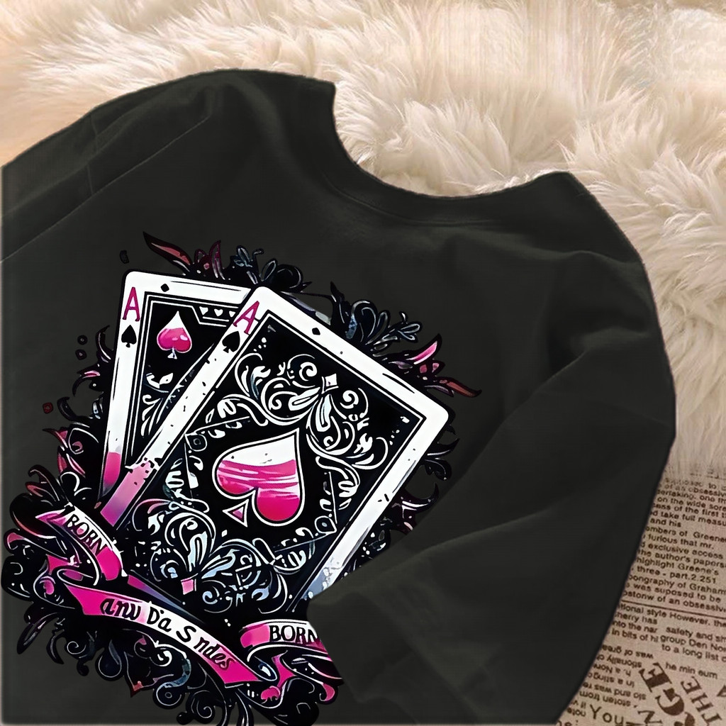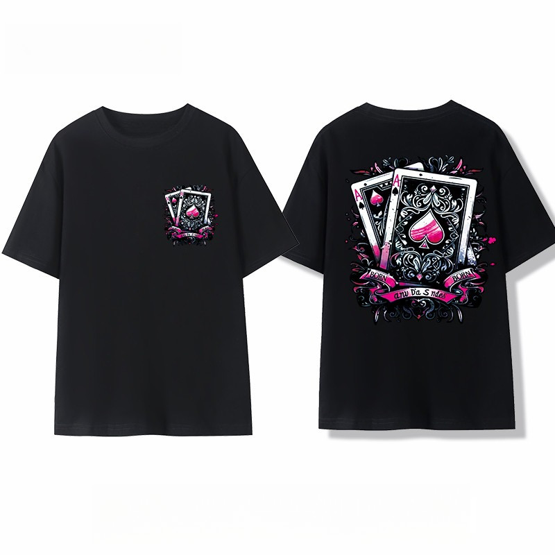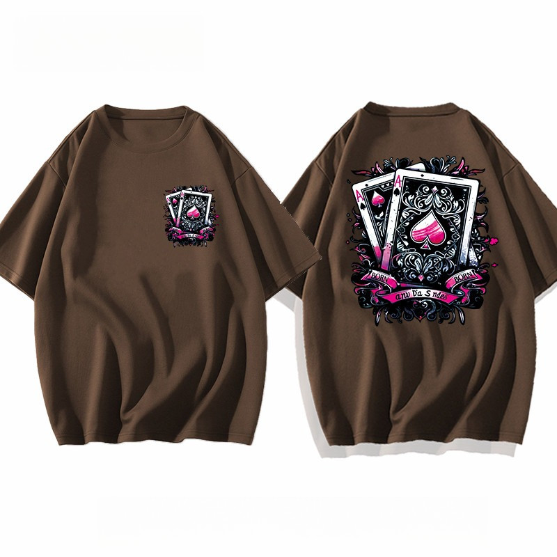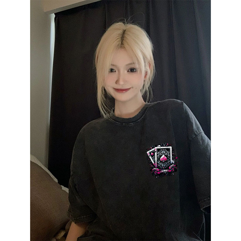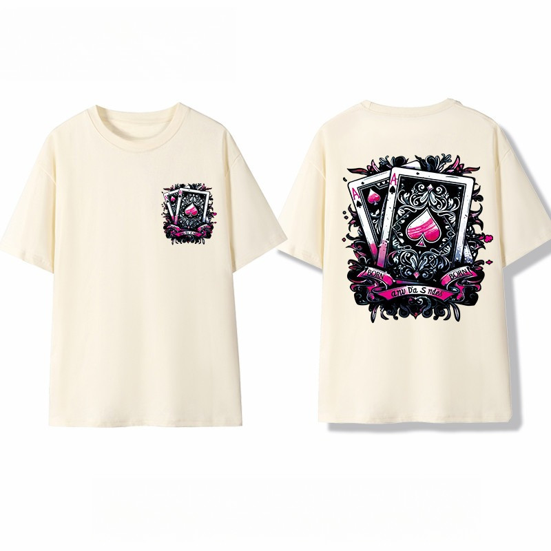 【220G 100%Cotton】SISI vintage T-shirt with hip-hop poker card oversized American short sleeved shirt