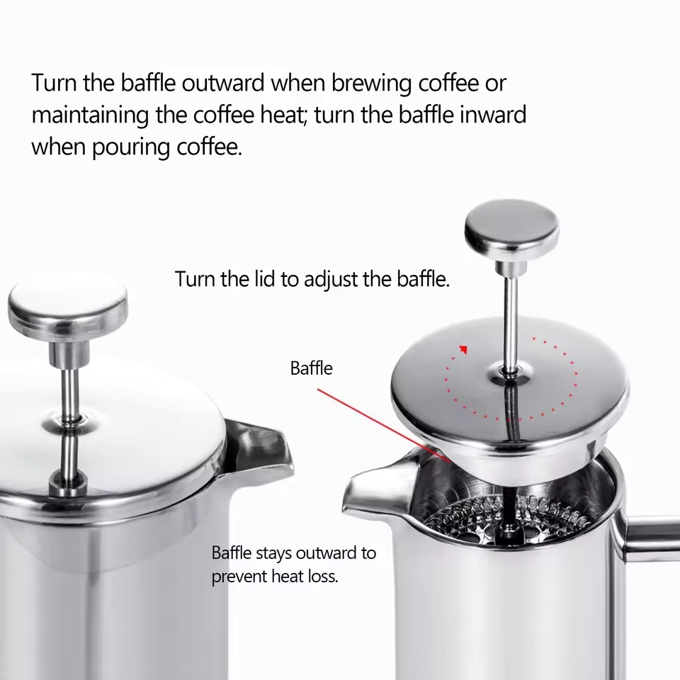 350ml/800ml/1000ml Coffee Maker Pot French Press Coffee Maker 304 Stainless Steel Double Walled