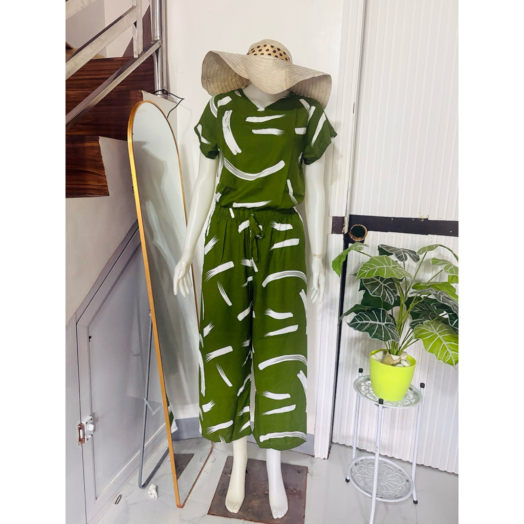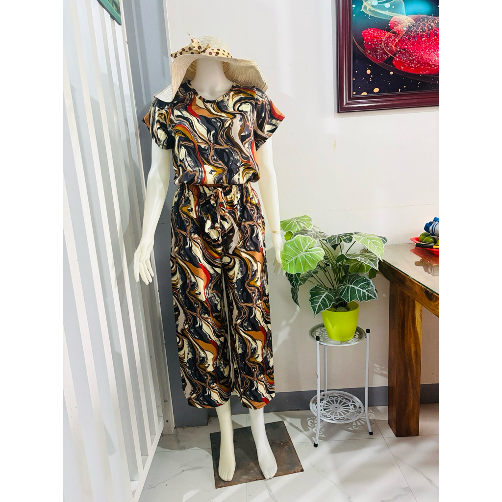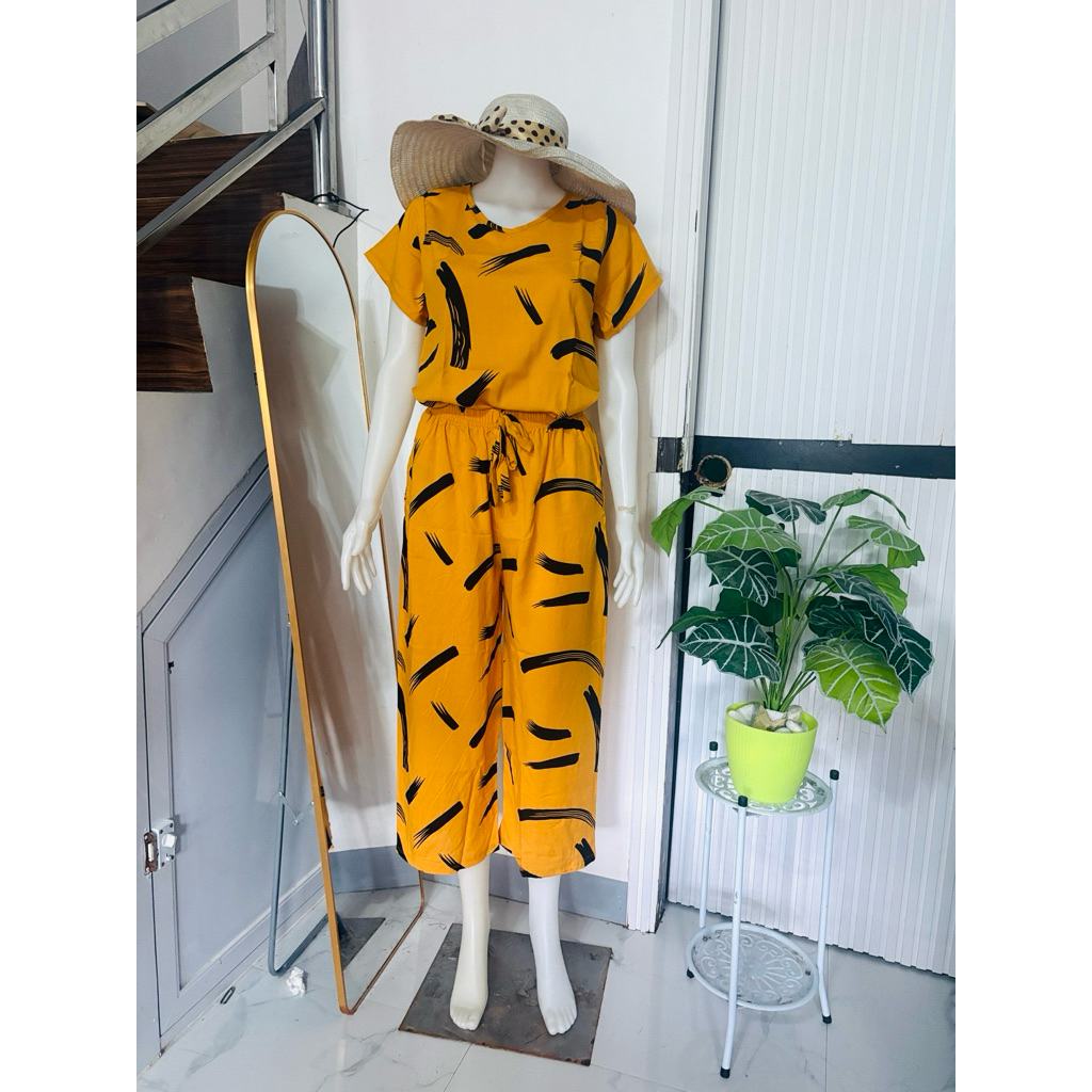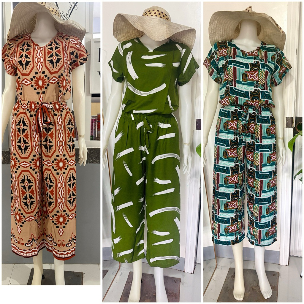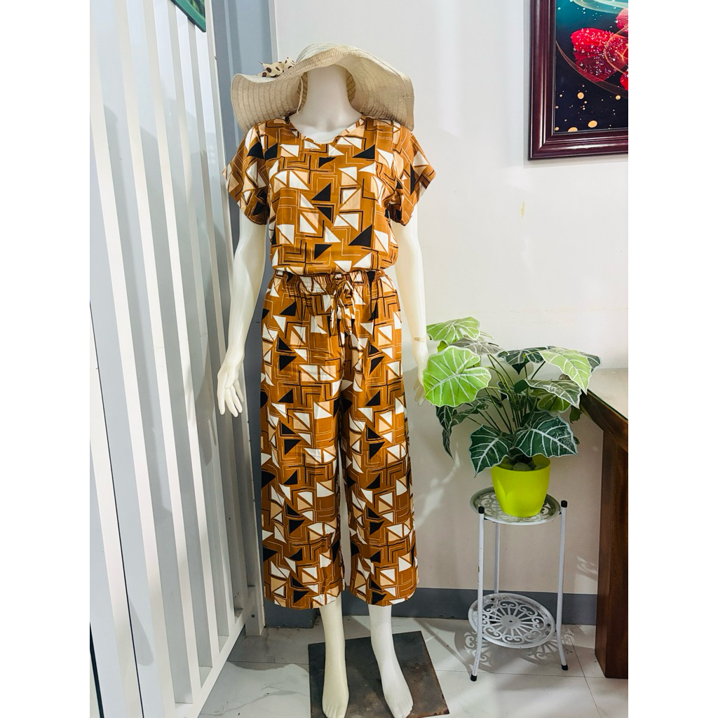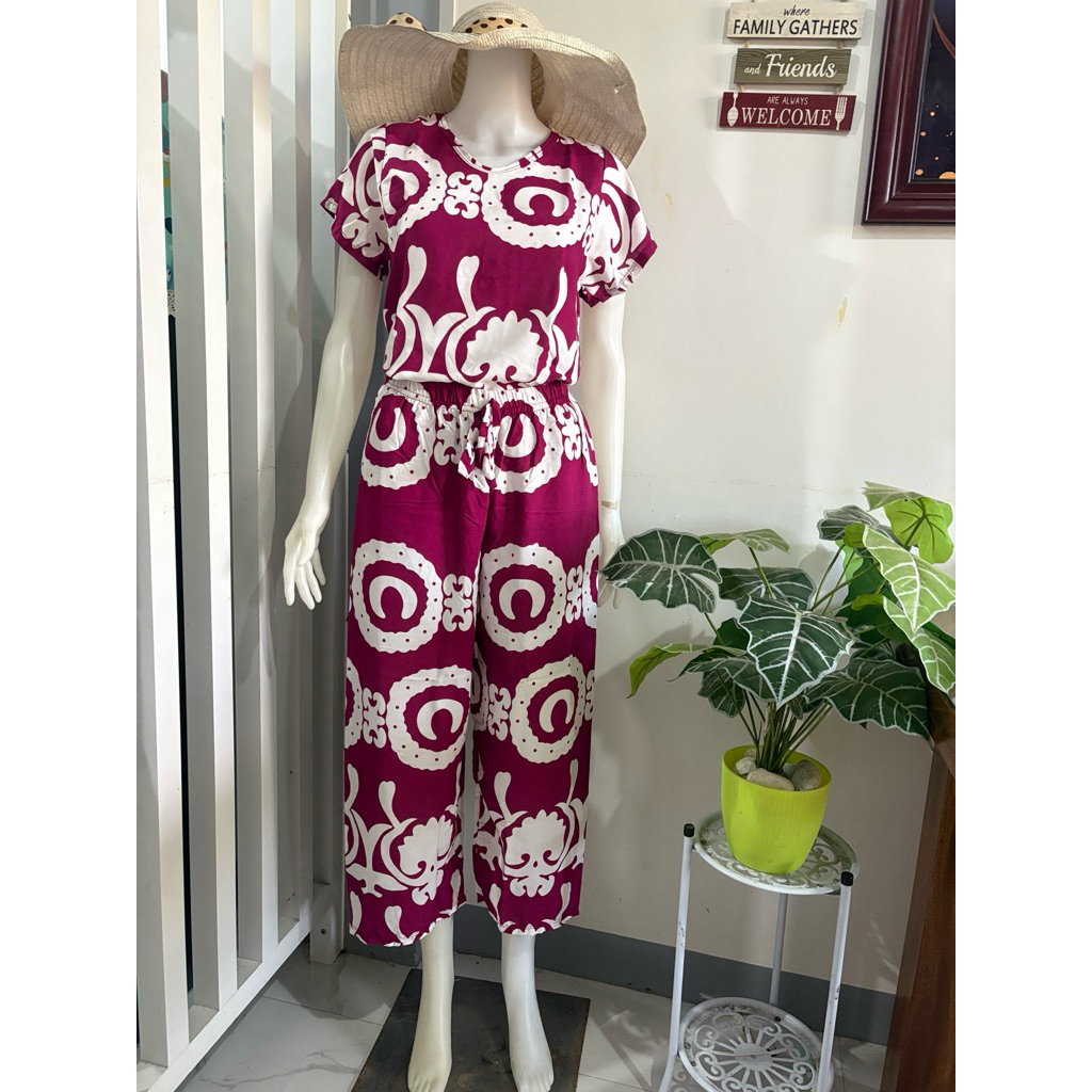 challis printed terno squarepants for women with two side pockets