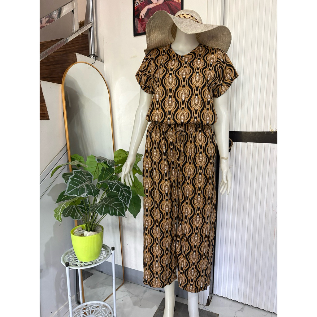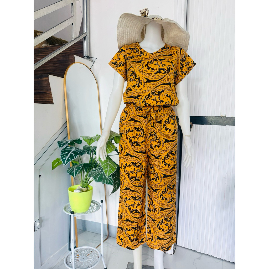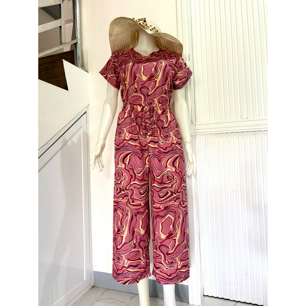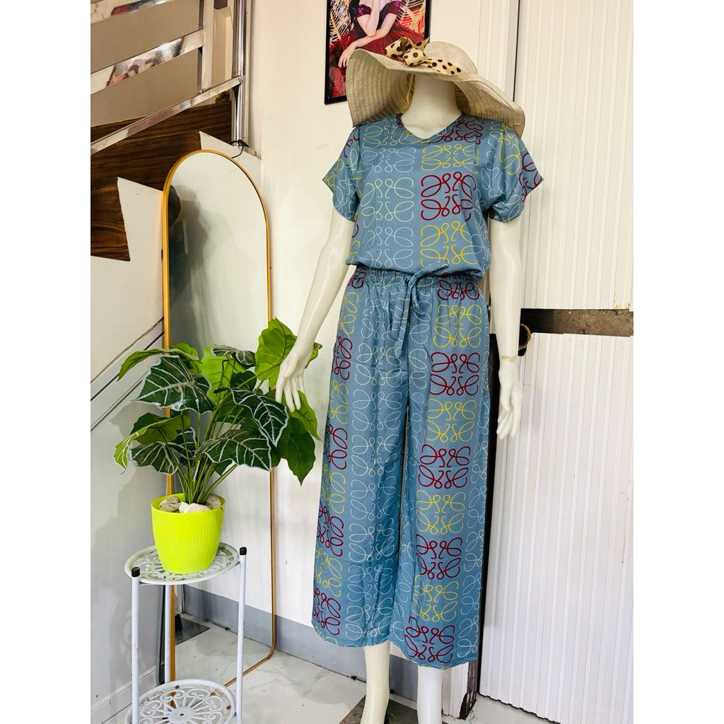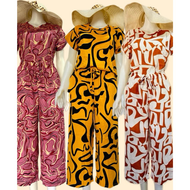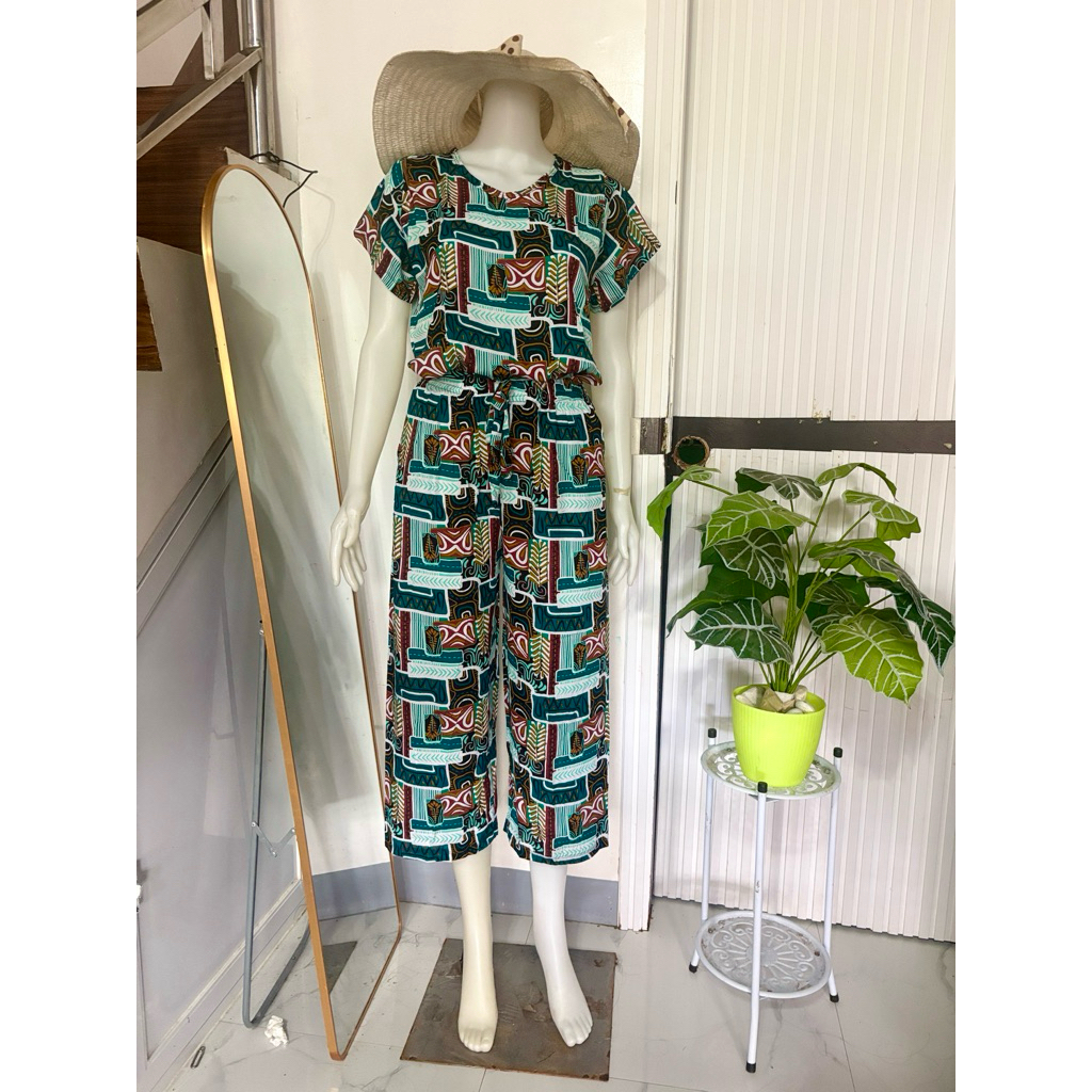 challis printed terno squarepants for women with two side pockets