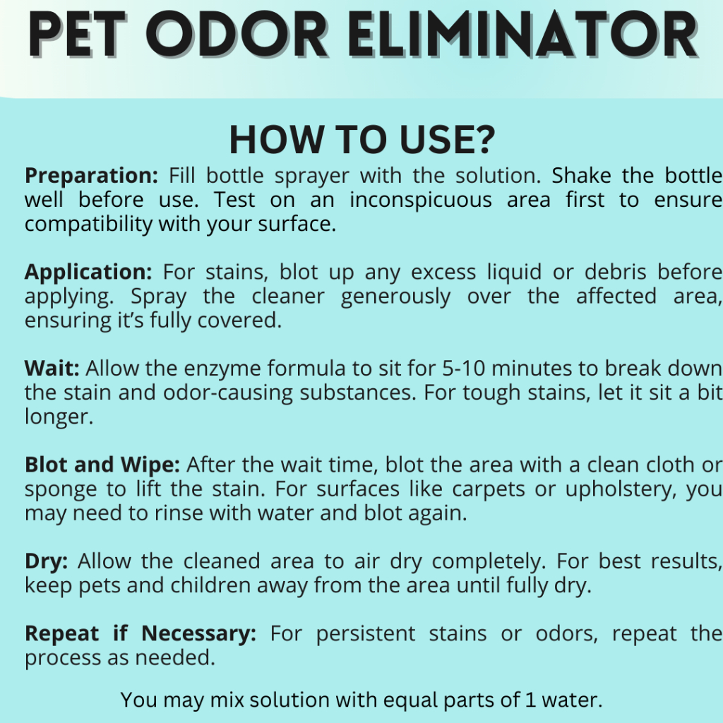 Enzyme Pet Odor Eliminator disinfectant and cleaner Spray Refill, Dog and Cat urine cleaner solution