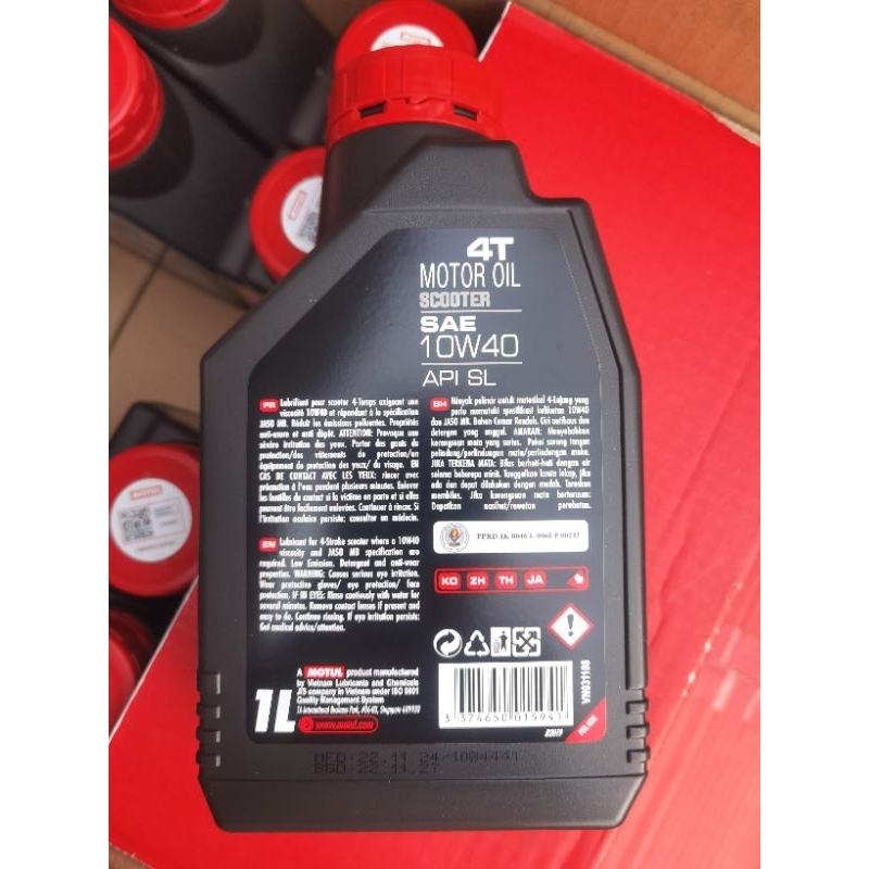 Motul Scooter oil 4T SAE 10W-40 API SL for scooters, 1 Liter and 800ml made in Vietnam Original