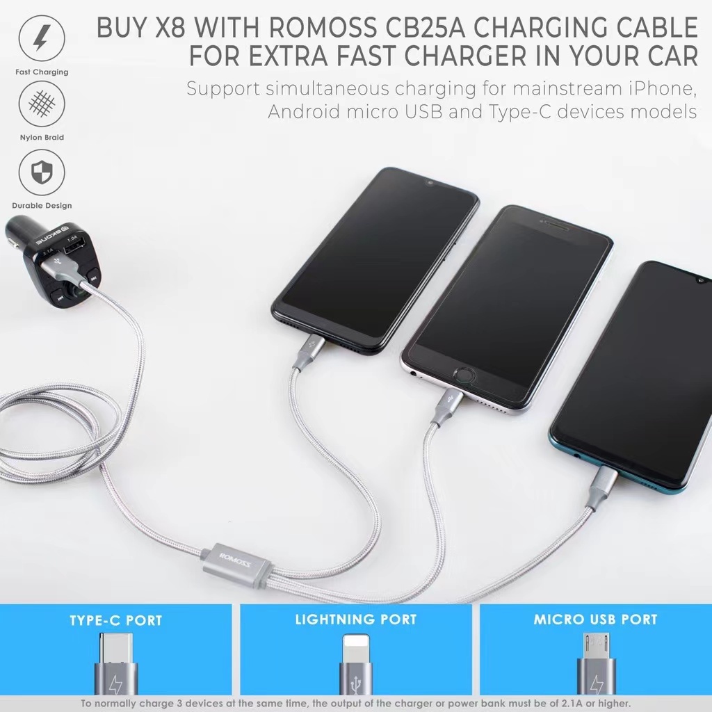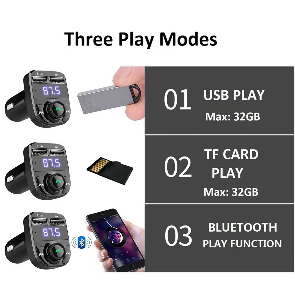 Bluetooth Car Audio Receiver Transmitter Aux for Car FM X8 Modulator MP3 Player 3.1A