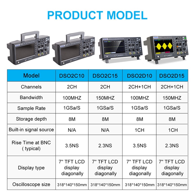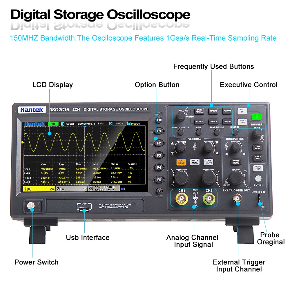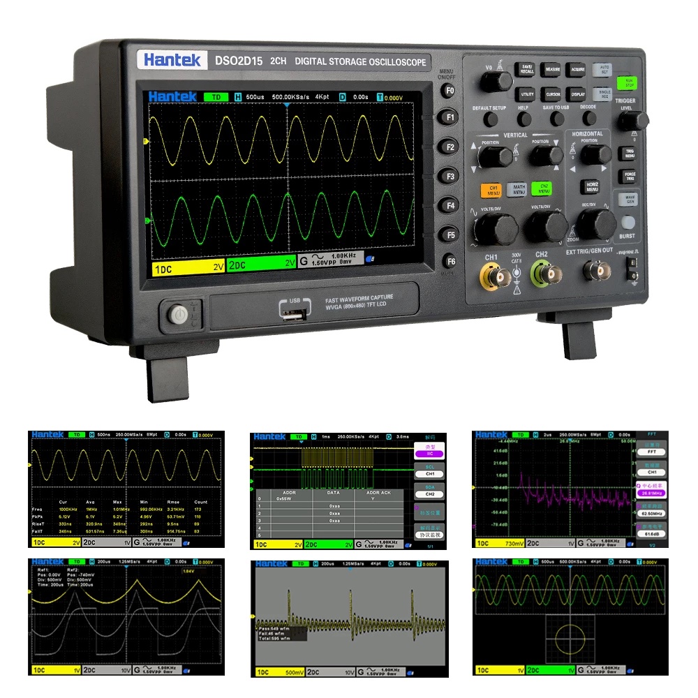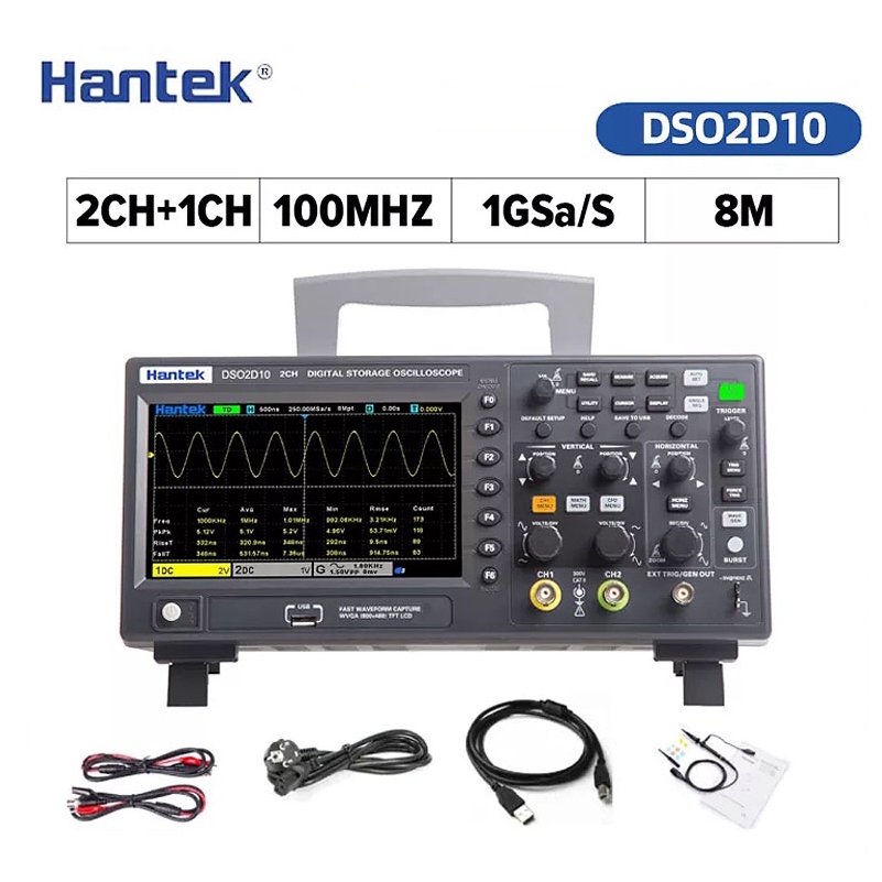 Hantek DSO2D10 Digital Oscilloscope 2CH+1CH Digital Storage 1GS/s Sampling Rate 100MHz Bandwidth Dual Channel Economical