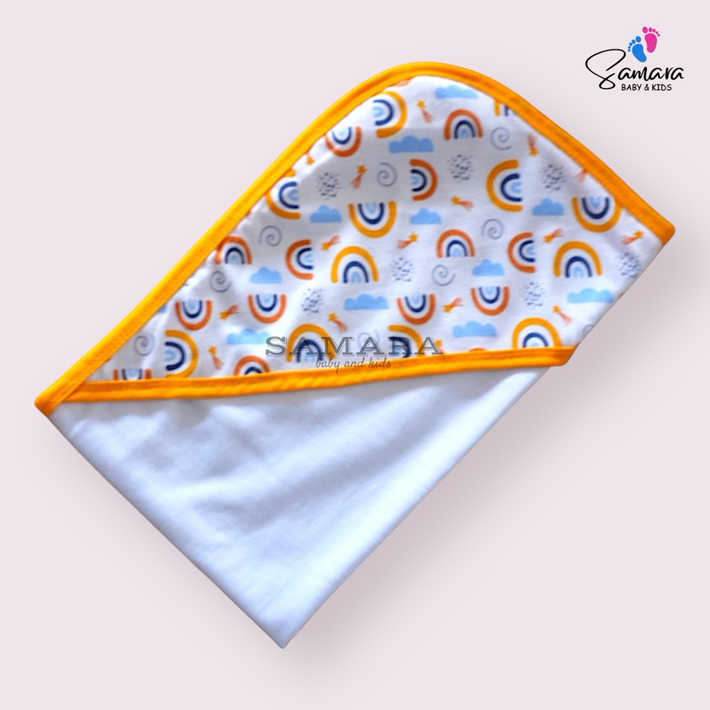 Samara Baby Hooded Blanket | Soft Cotton Swaddle for Newborn | Cute Print Tiny Cheeks Baby Blanket