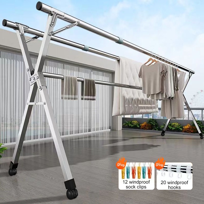 Foldable Hanger Stainless Steel Windproof Laundry Drying Rack Sampayan Clothes Rack With Wheel