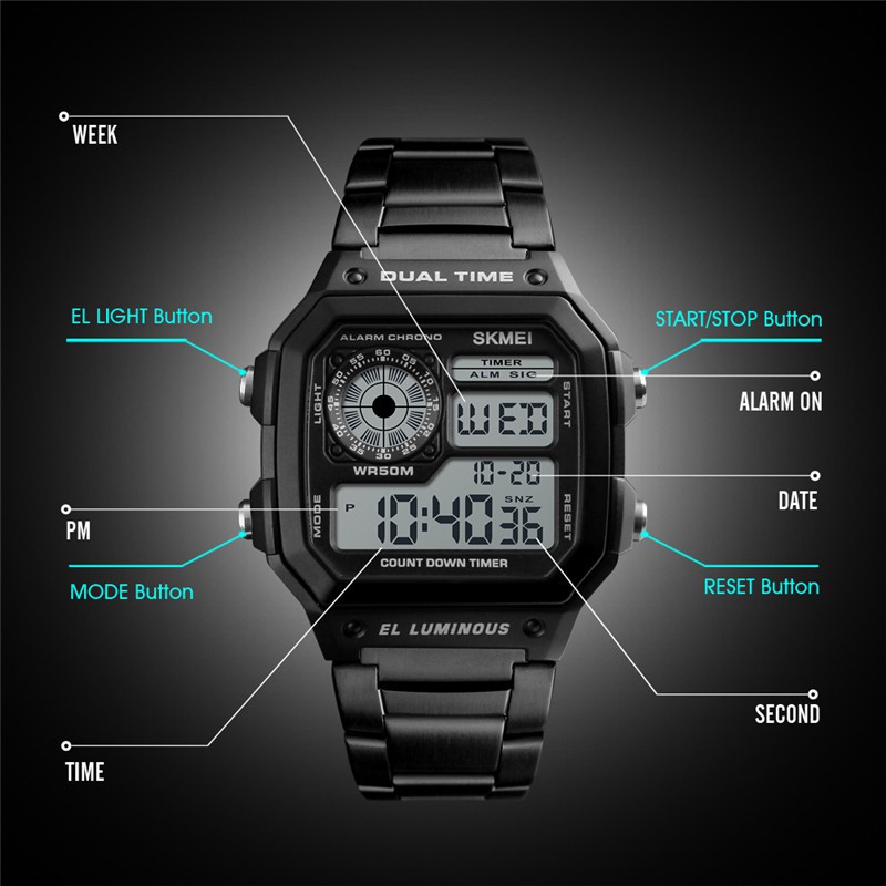 SKMEI Mens Digital Business Watch Full Steel led Wristwatch