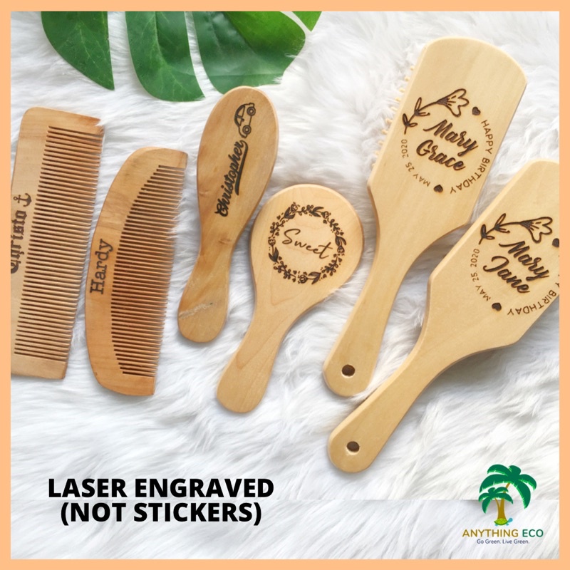 FREE NAME / Laser Engraved Wooden Comb / Paddle Hair Brush - NOT STICKERS