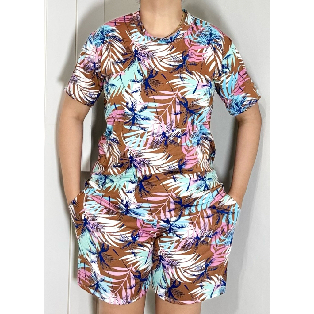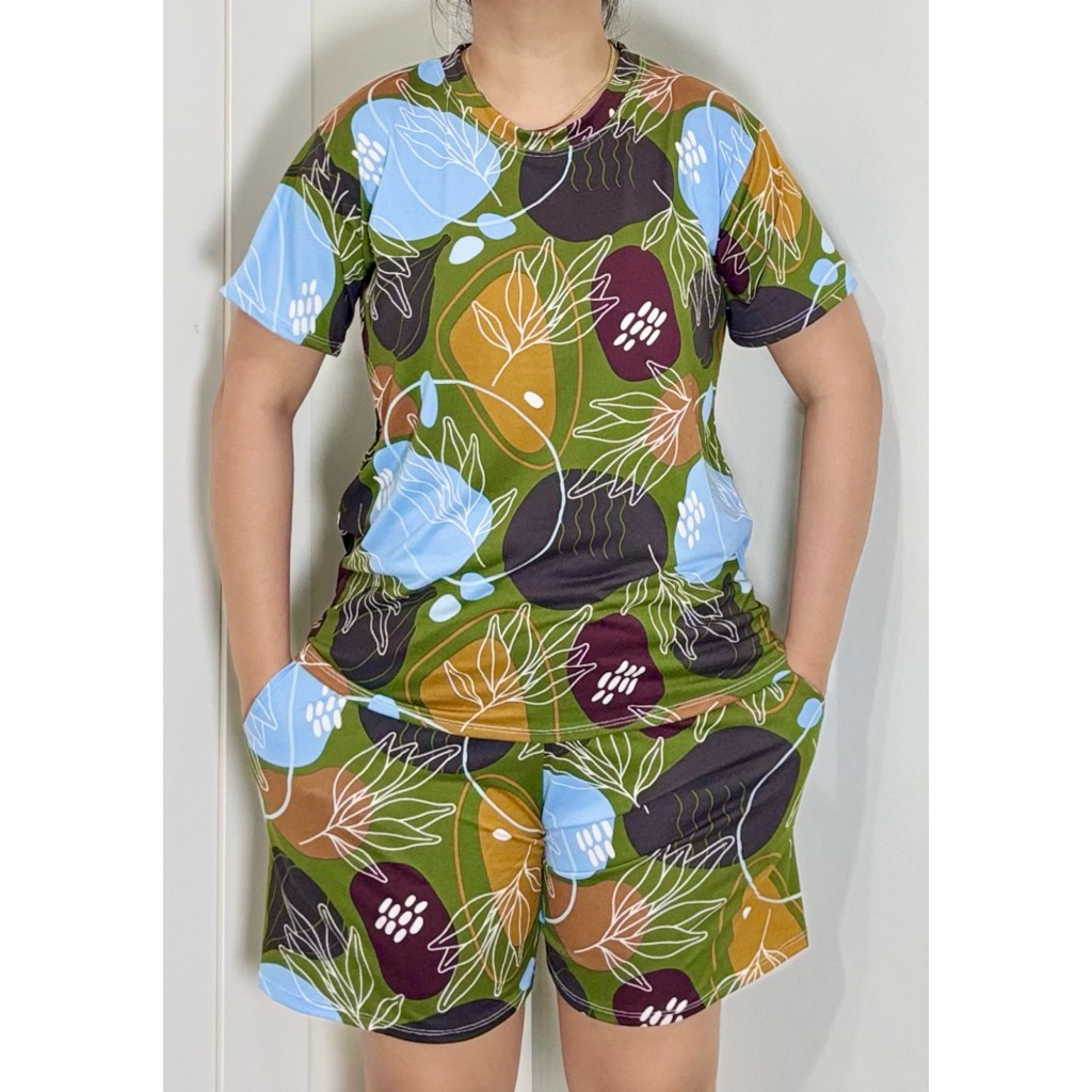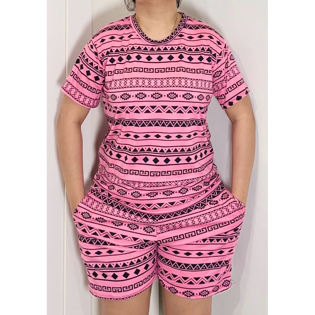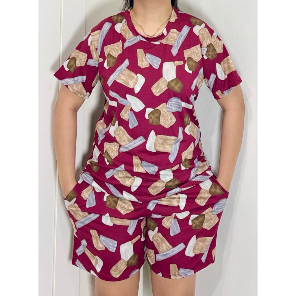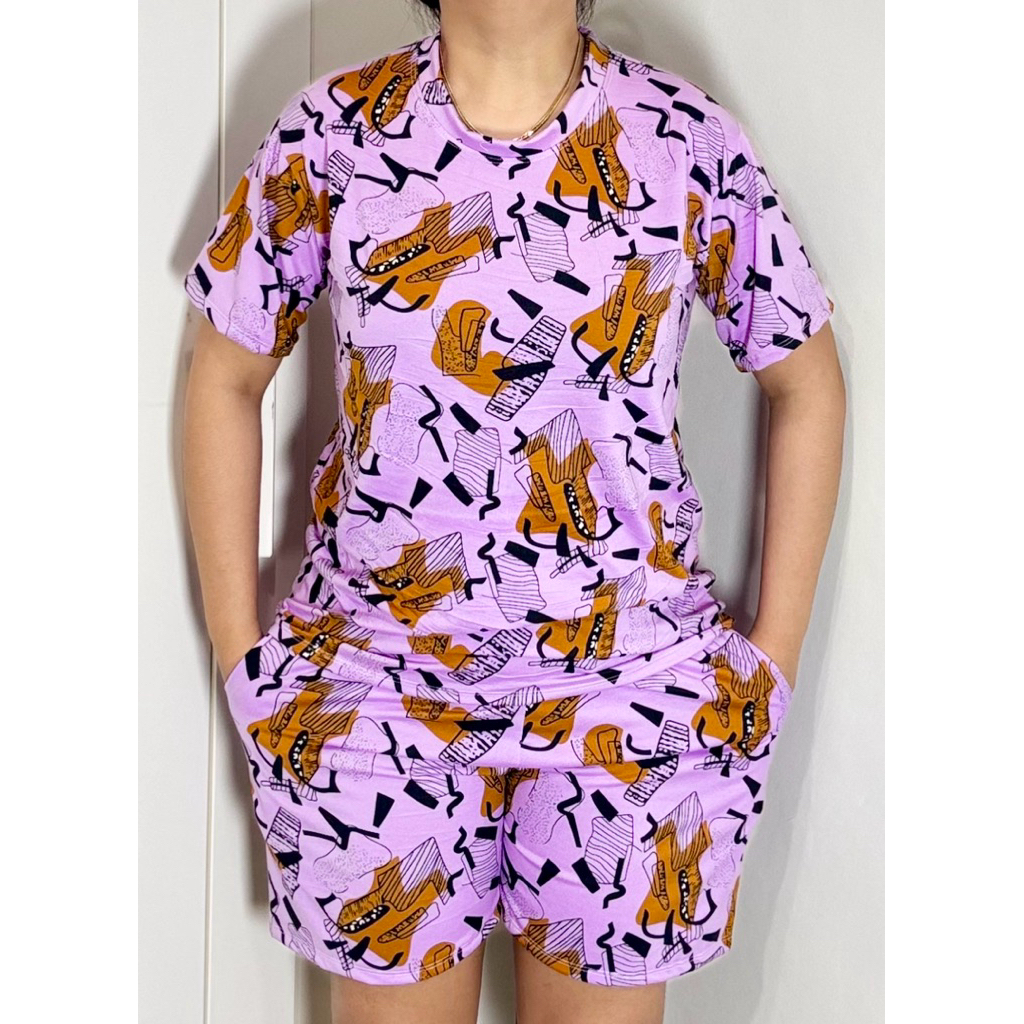 TERNO - Printed T-Shirt and Shorts Pambahay Pantulog for Adults with Two Side Pockets