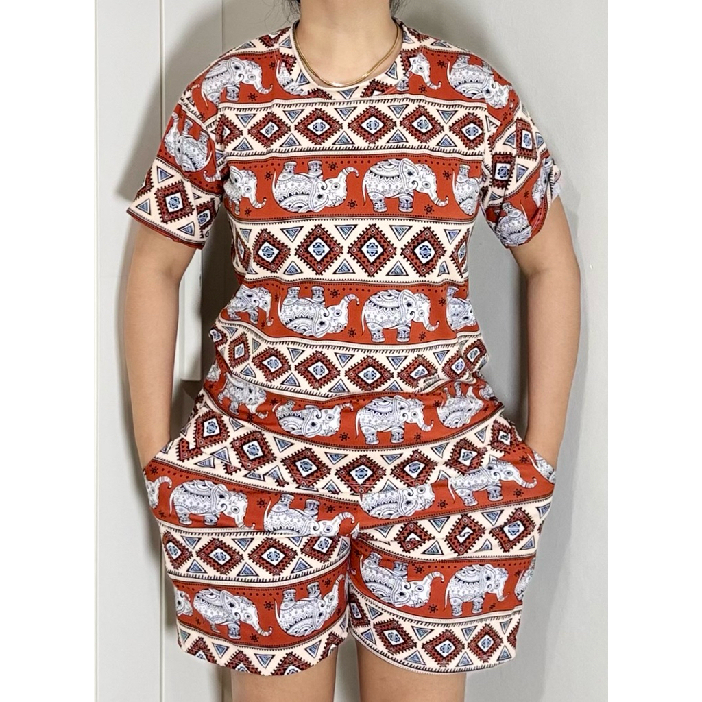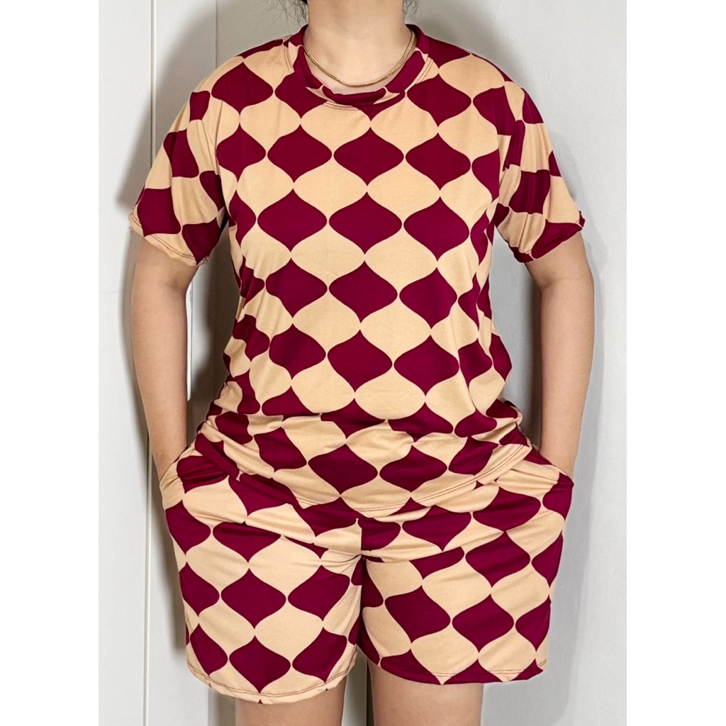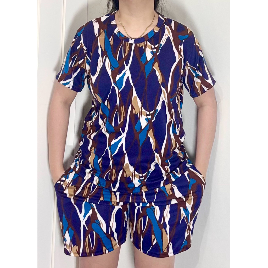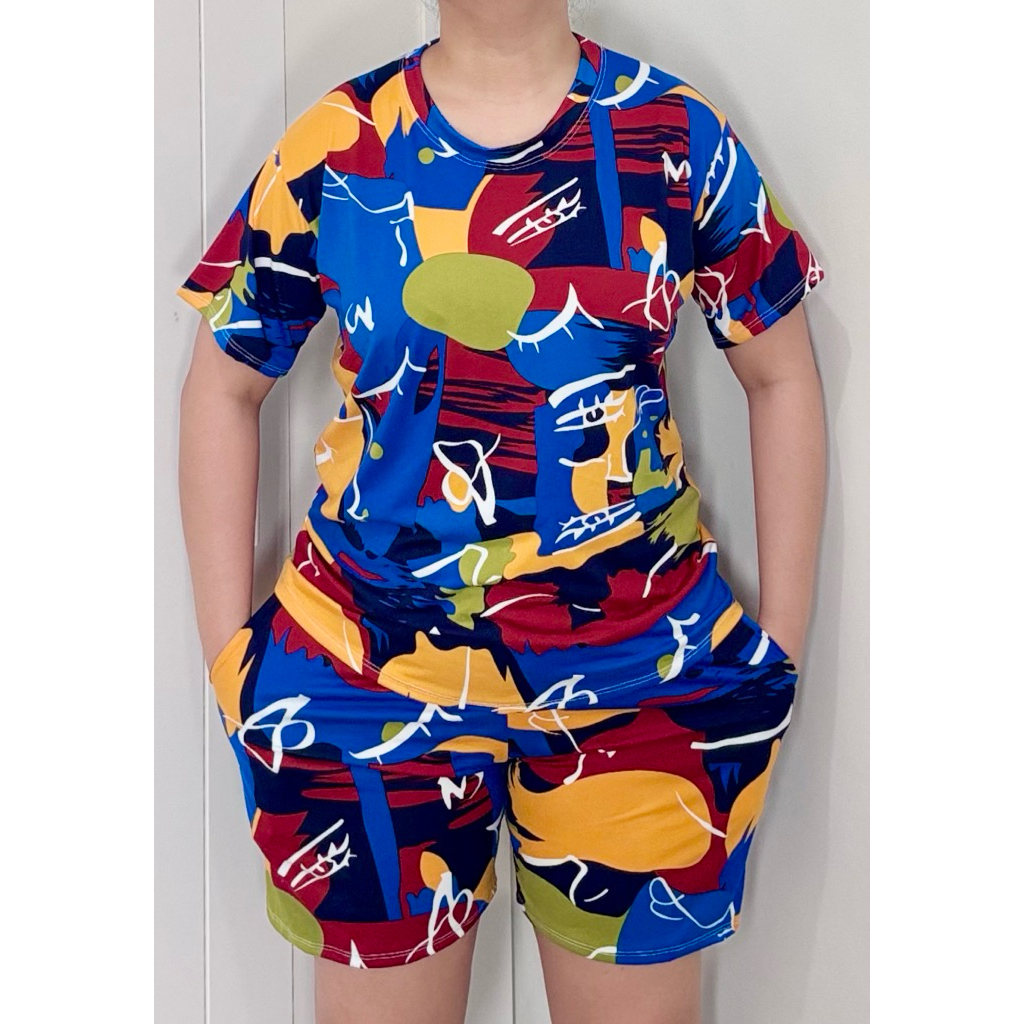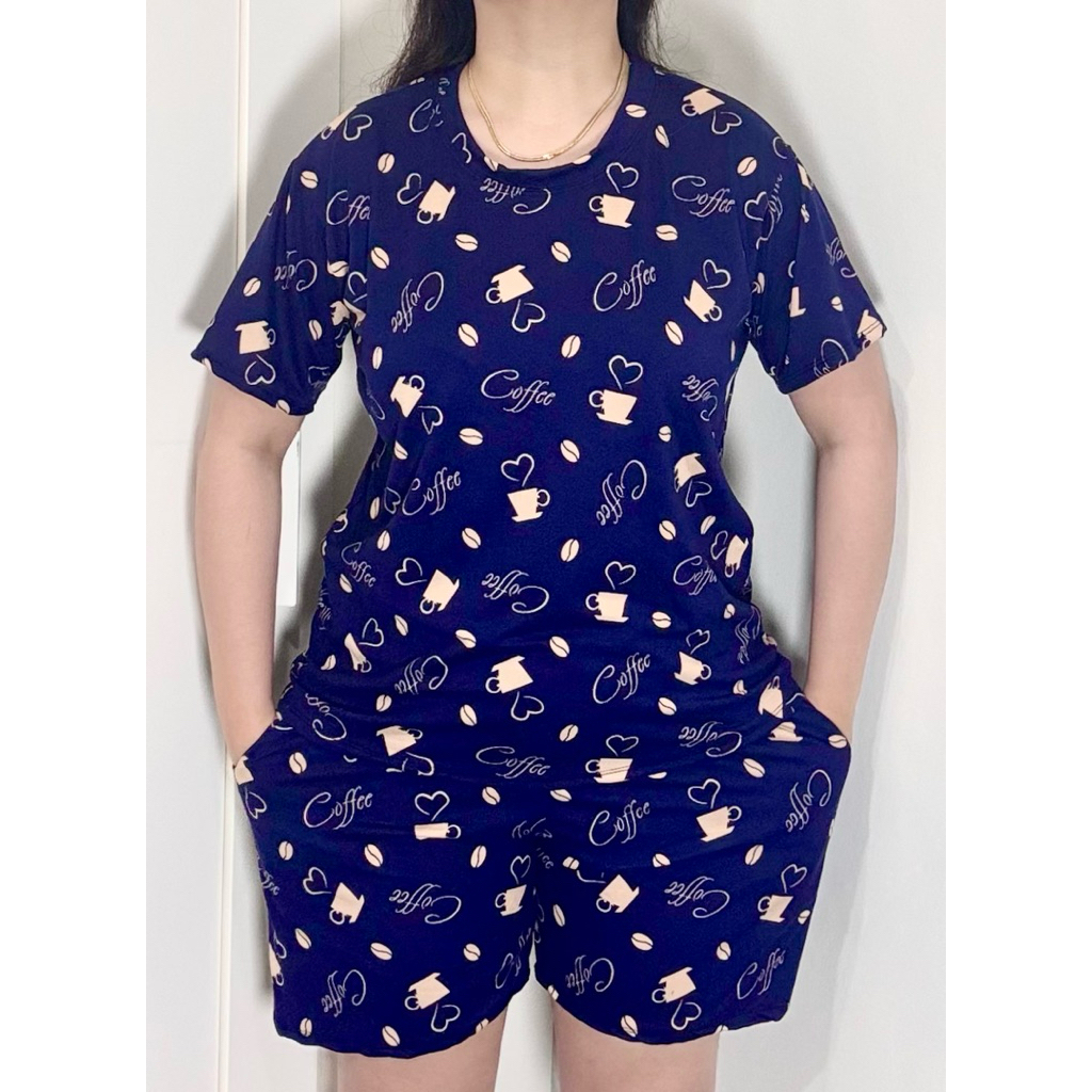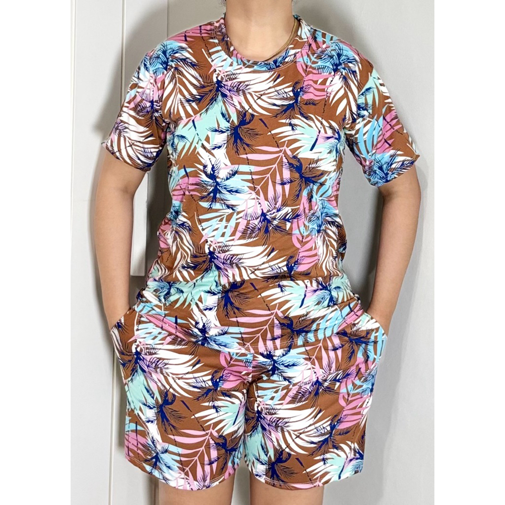 TERNO - Printed T-Shirt and Shorts Pambahay Pantulog for Adults with Two Side Pockets