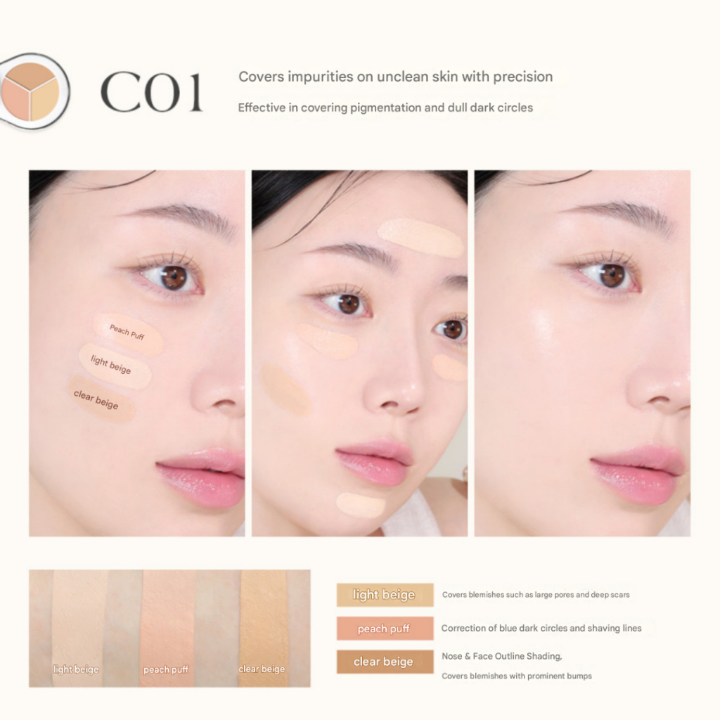 [Dear.A] Perfect Cover Concealer Palette 13g*3 +Puff Under Eye Dark Circle Spot Acne Scar Makeup