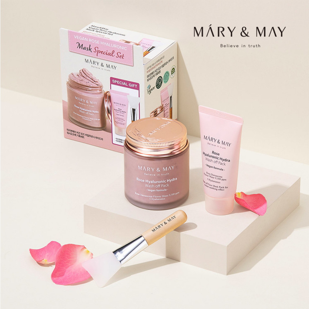 Mary&May Vegan Hyaluronic Hydra wash off Mask Special Gift Set (Wash off Pack 125g 1EA+Wash off Pack 30g 1EA+ Washoff Spachulla 1EA)