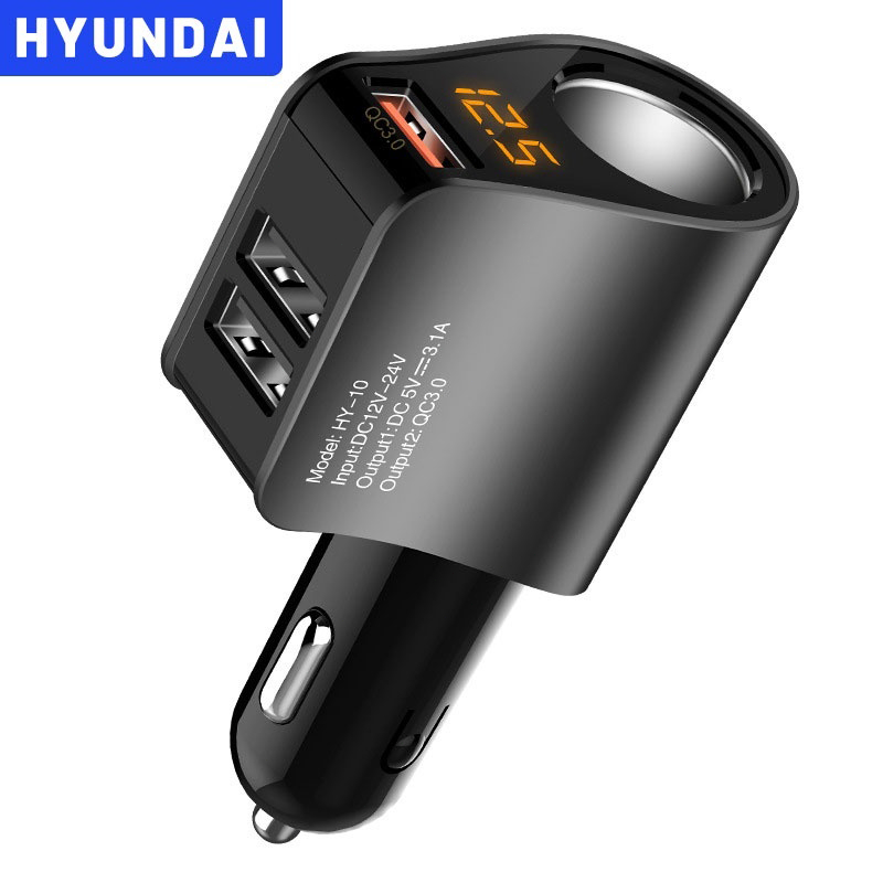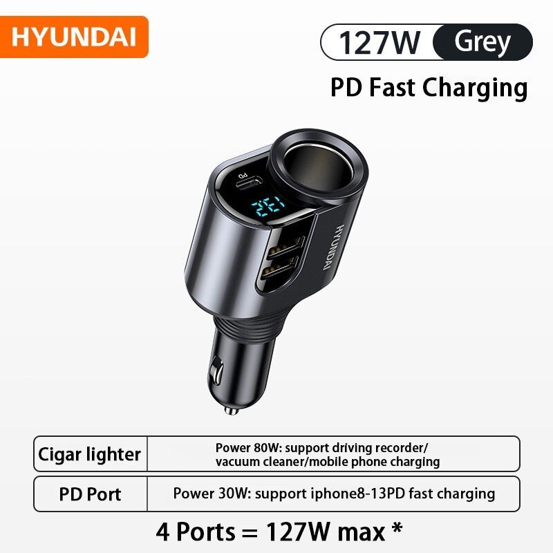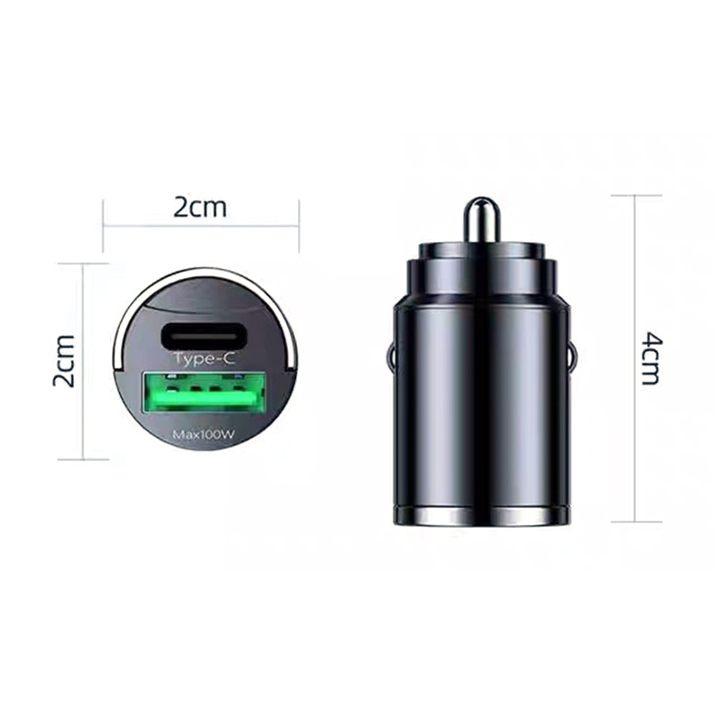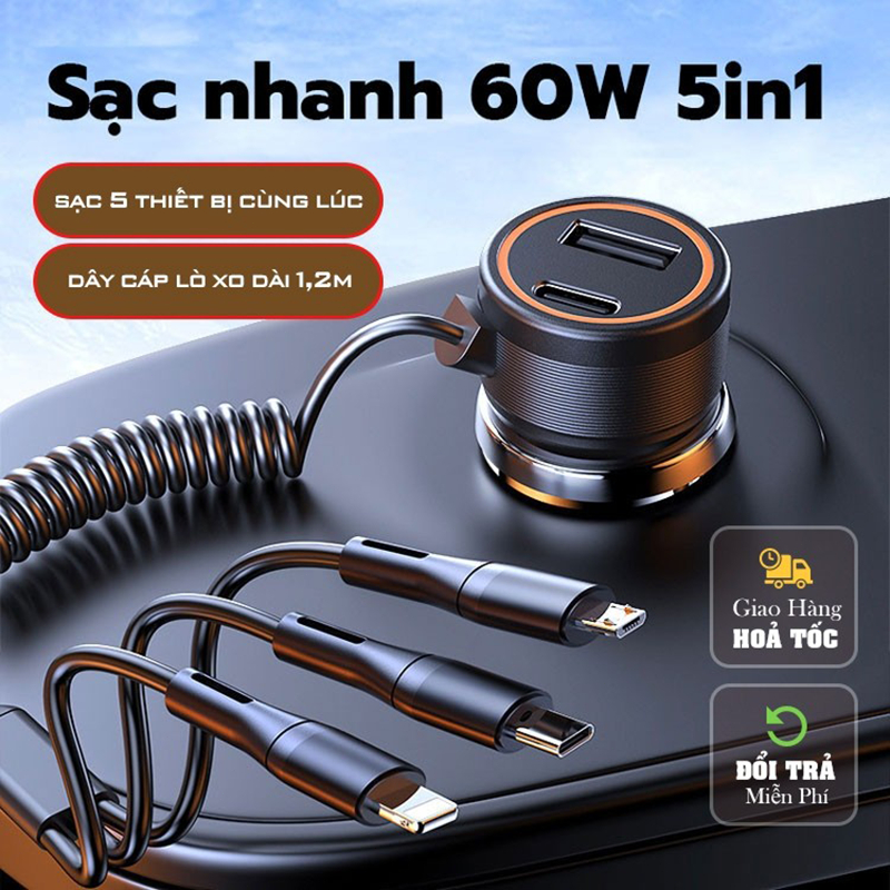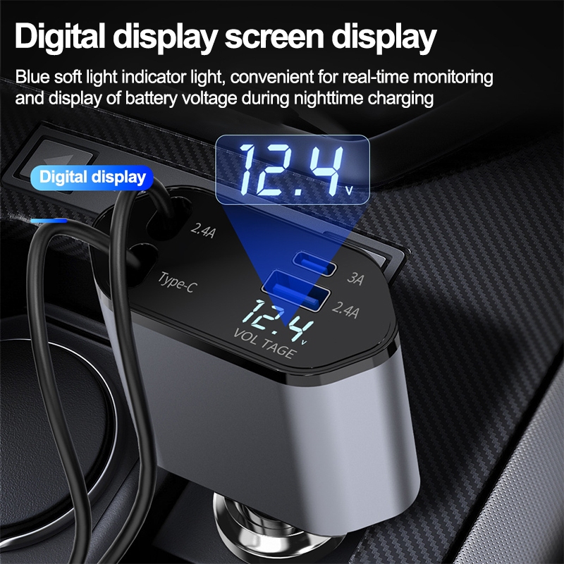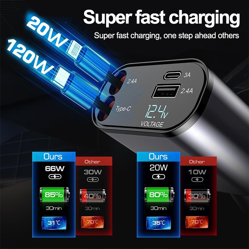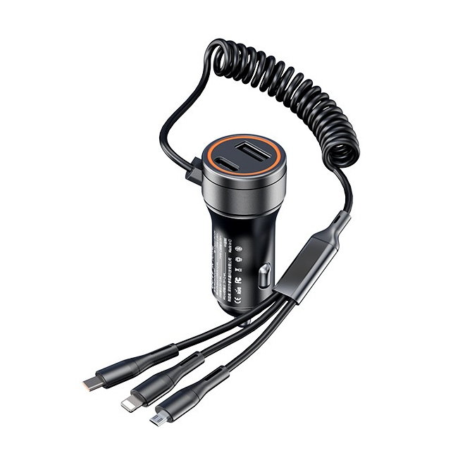 Four-In-One Quick Charger with Retractable Cable Type C and IOS USB Car Charger Quick Charge Plug