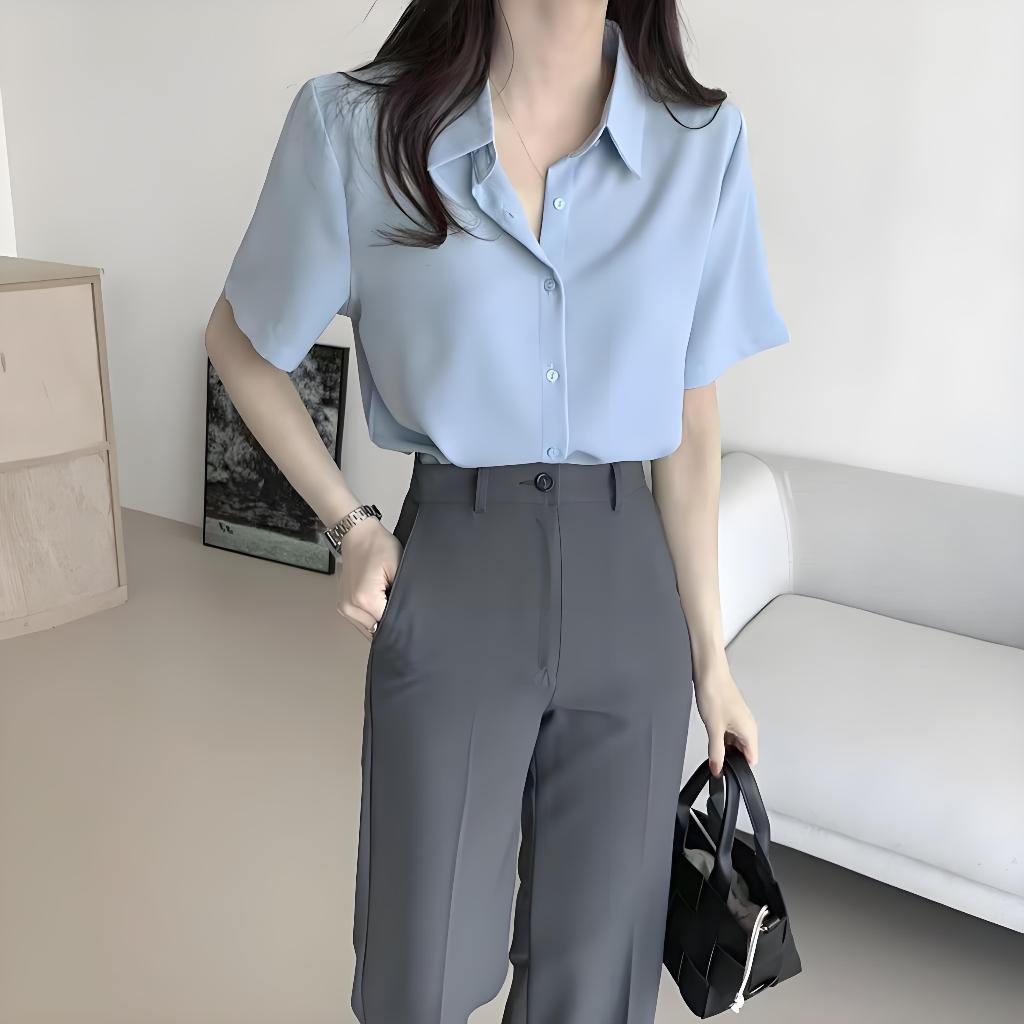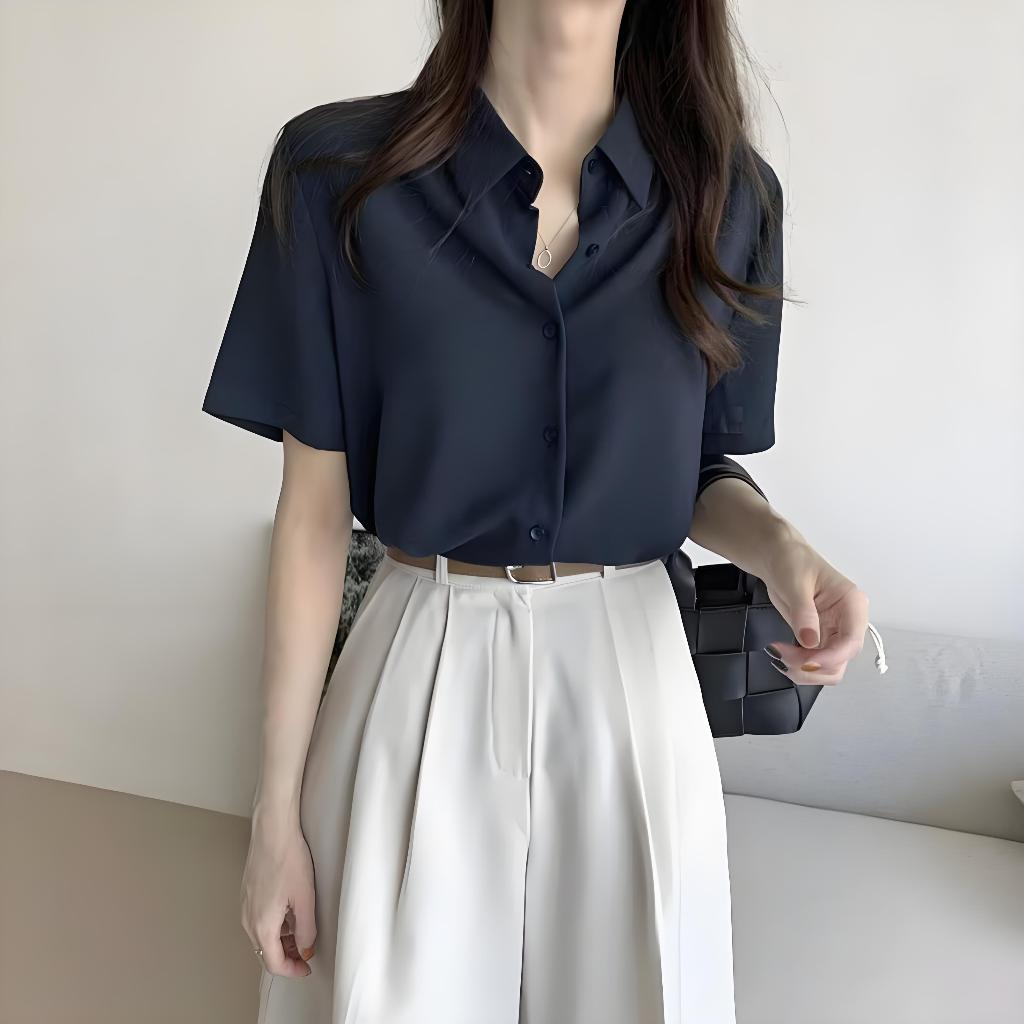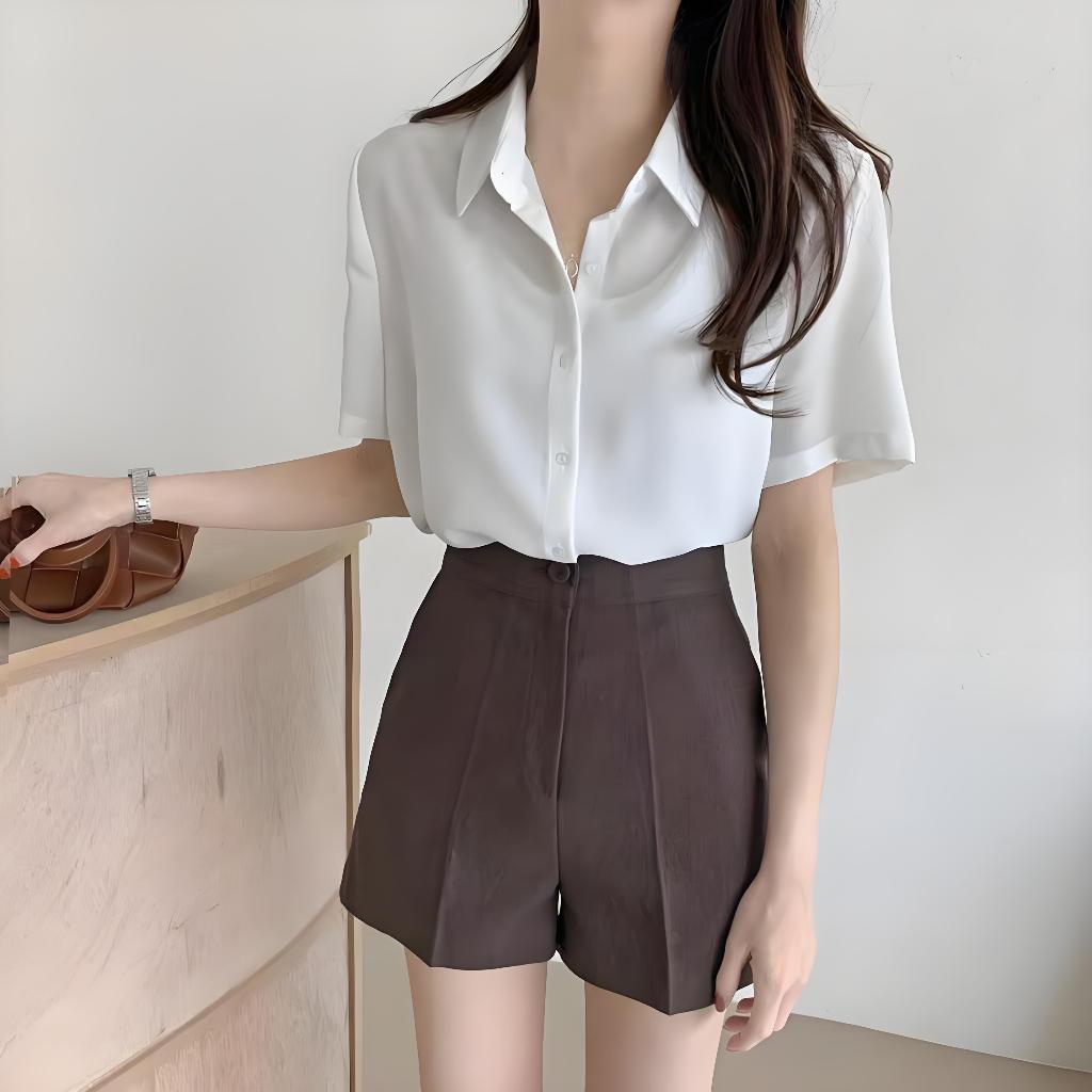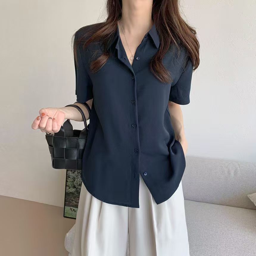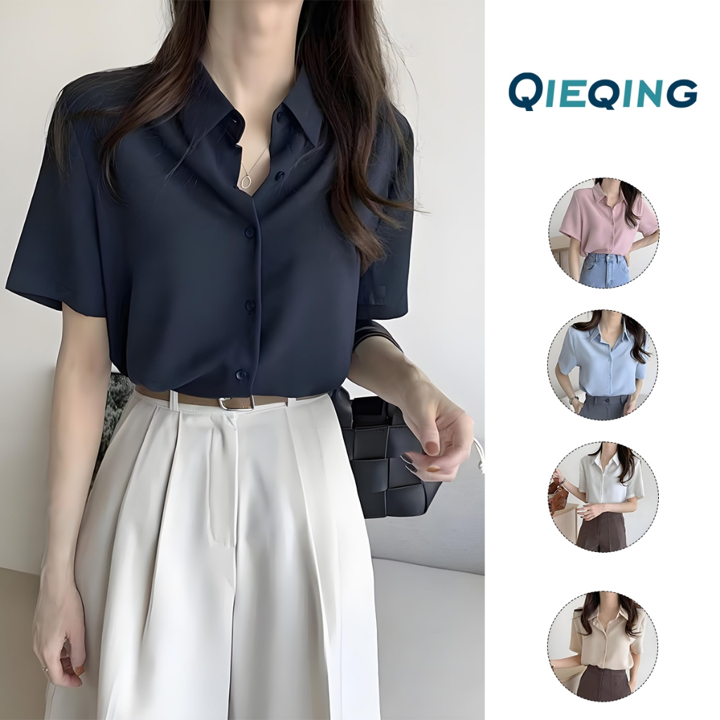 QIEQING Women's Blouse Short Sleeve Plain Chic Casual/Office Tops Korean Style