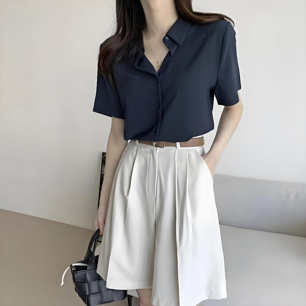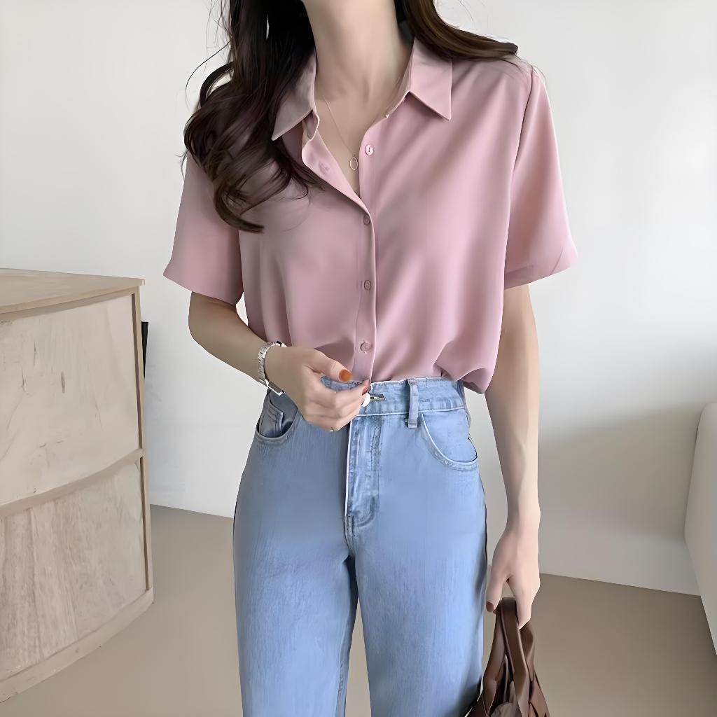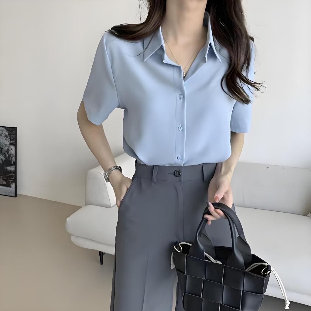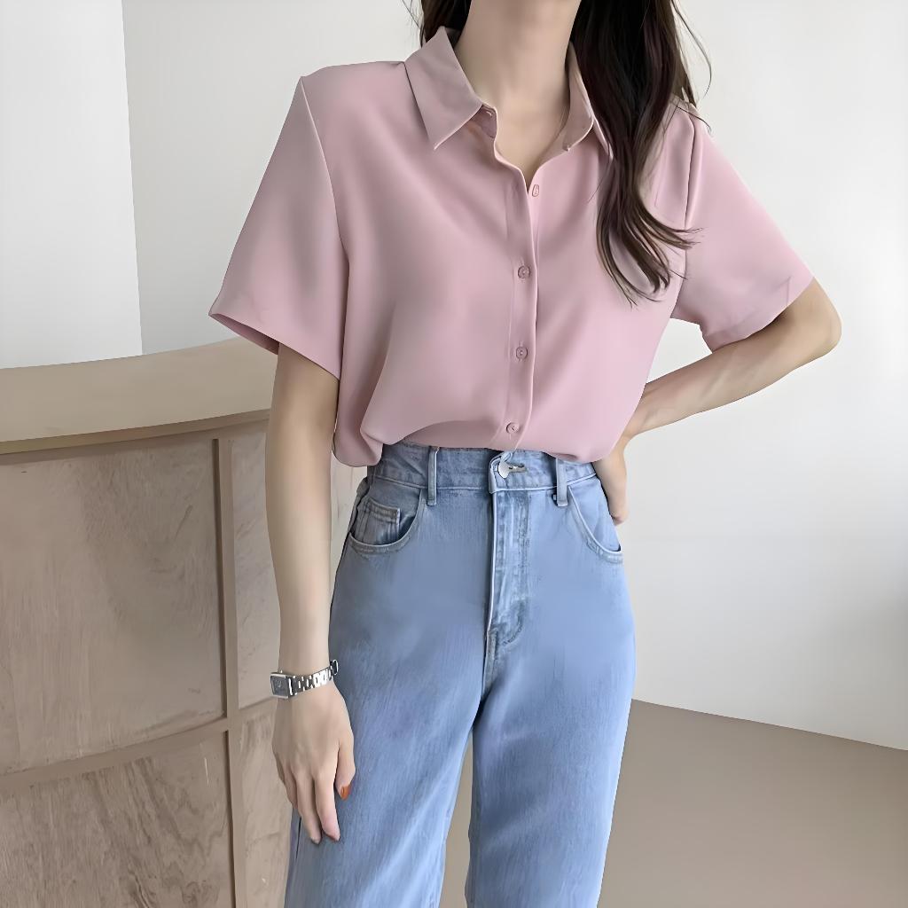 QIEQING Women's Blouse Short Sleeve Plain Chic Casual/Office Tops Korean Style