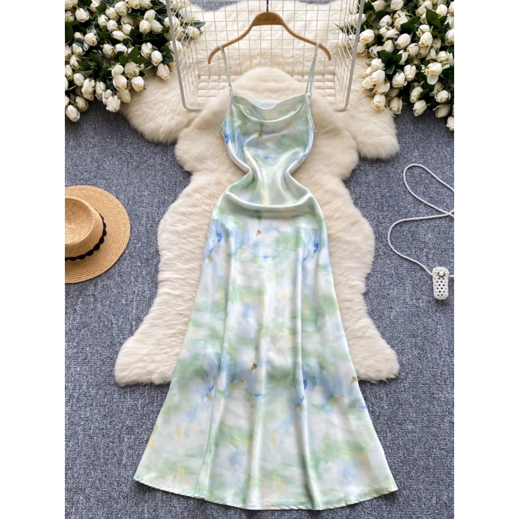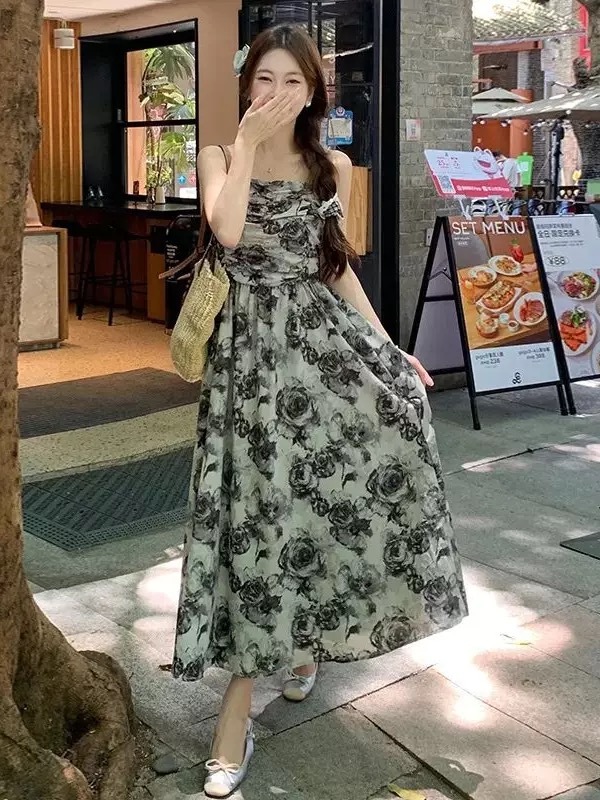 summer beach floral sage green dress outfit for women casual elegant wedding guest plus size korean