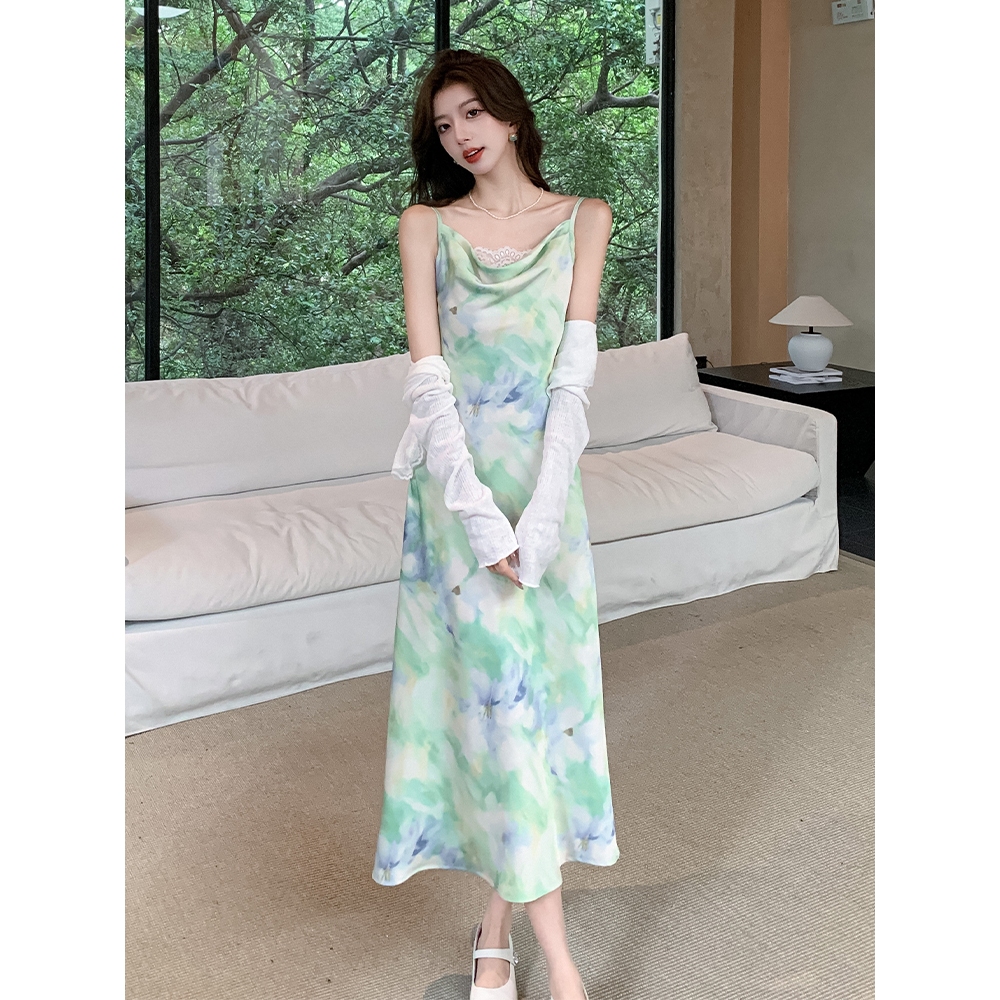 2026 summer multicolor Bodycon Halter dress korean midi slip dress for wome floral sleeveless dress