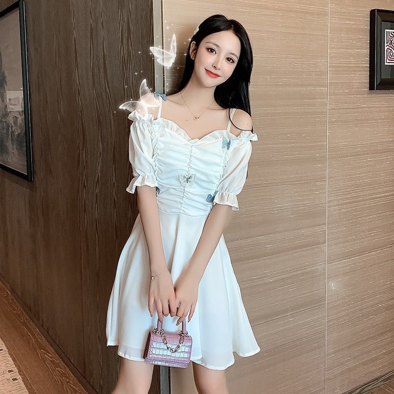 mini white cute off shoulder fairy js prom casual dress gown for woman beach outfit korean style