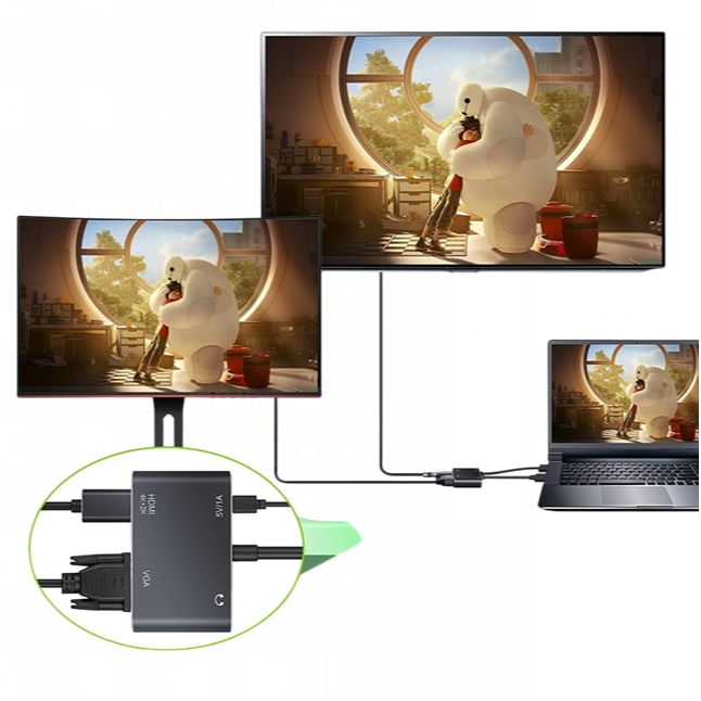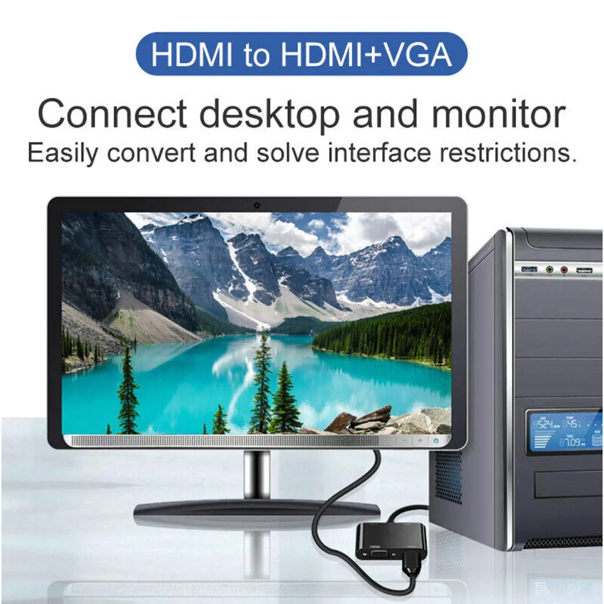 HDMI to HDMI + VGA 4k 60Hz Ultra HD Compact Cable Adapter with 3.5mm Audio Jack Adapter Converter