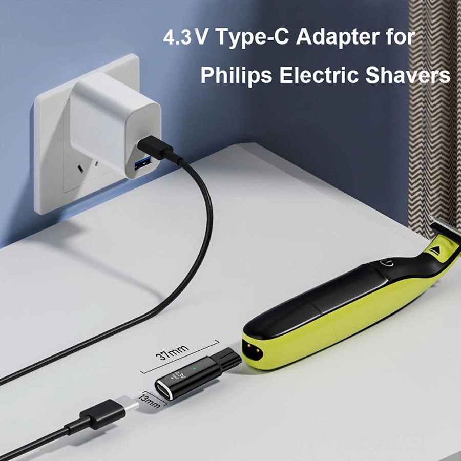 Type-C to 4.3V A00390 Shaver Charger for Norelco OneBlade QP2520 QP2521 QP2523 QP2560 Razor Adapter