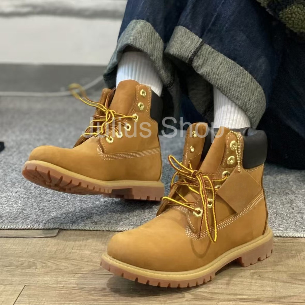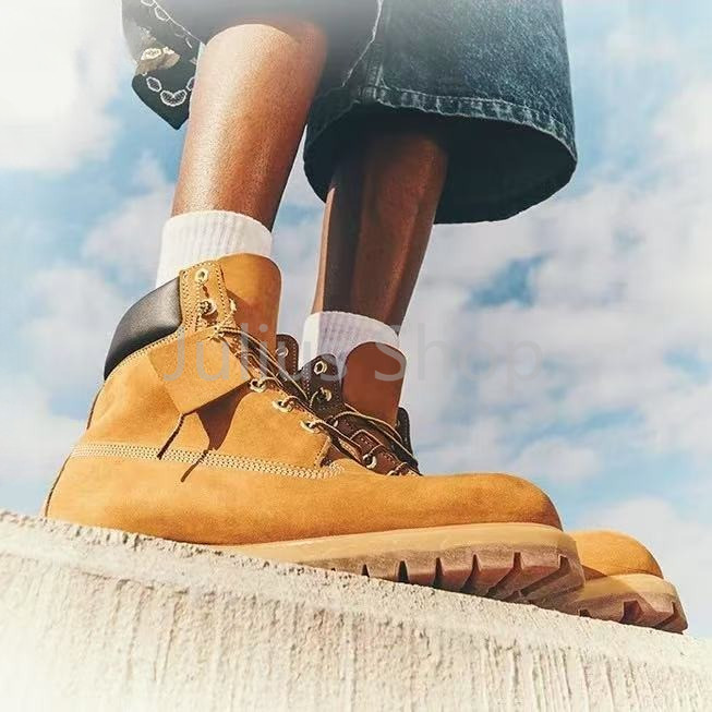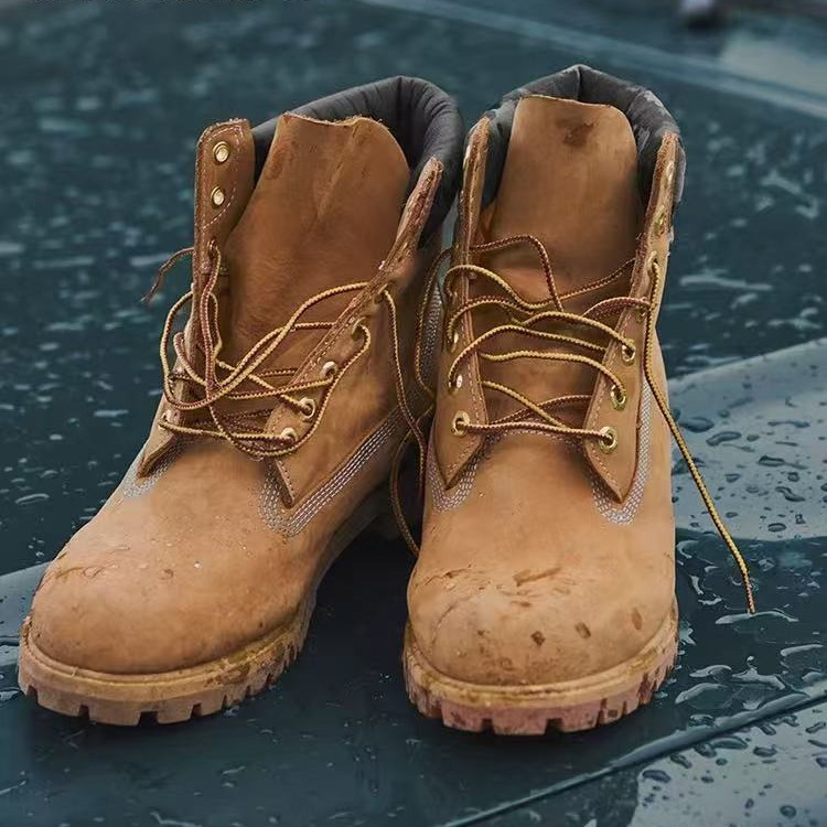 Dotmret Classic Rhubarb Boots Don't Break Unisex Outdoor Casual Yellow Leather Durable Material