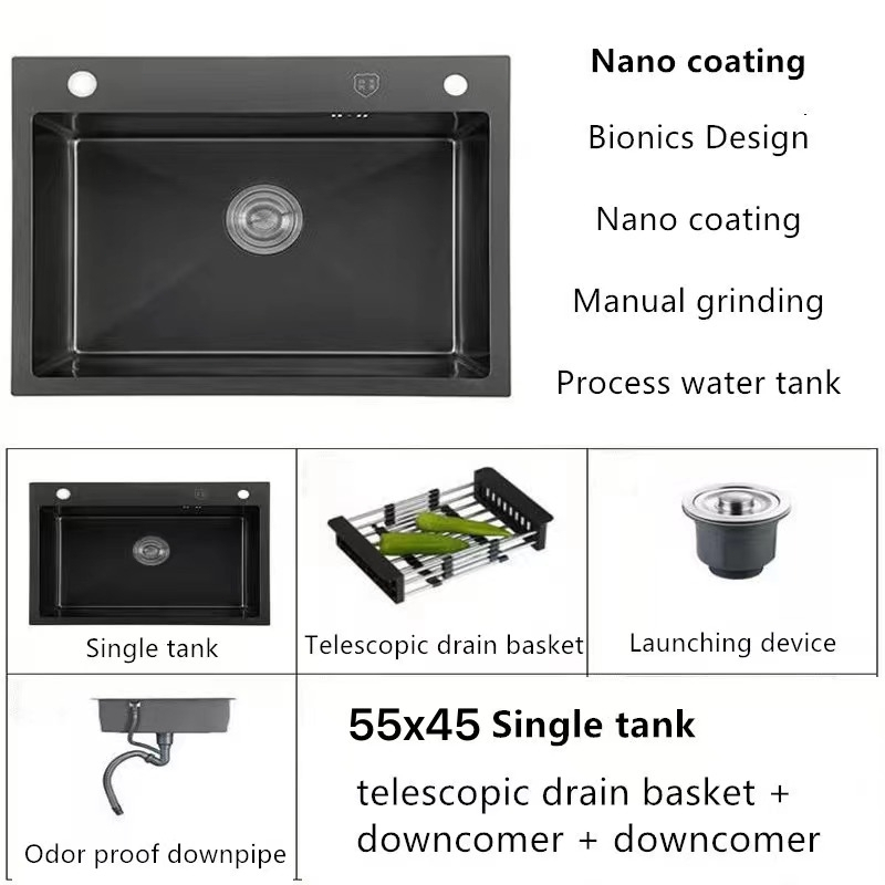 SUS304 Sink Complete Set Kitchen Sink Silver/black Basket Thickened free soap dispenser