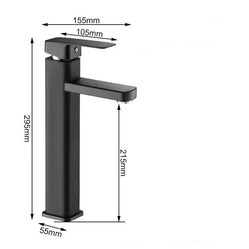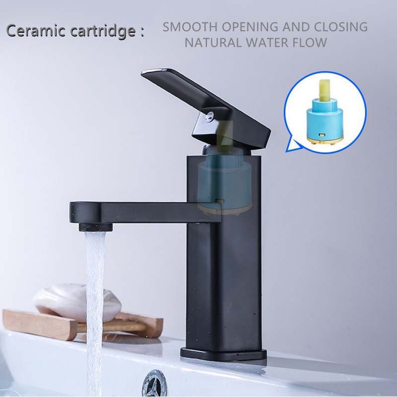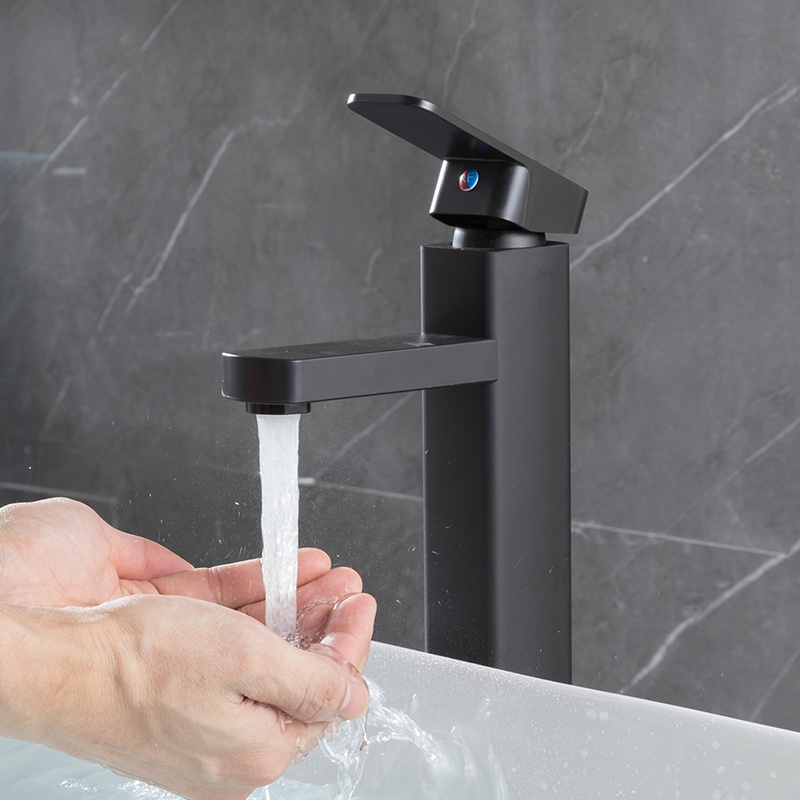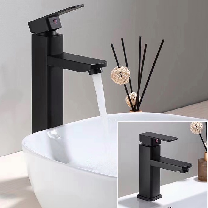 【Free Gift】Black Square Faucet SUS304 Bathroom Tap Basin Faucet Tall Toilet Sink Tap Hot Cold Mixer
