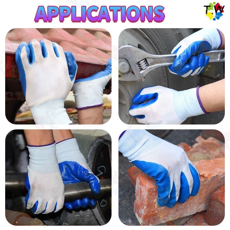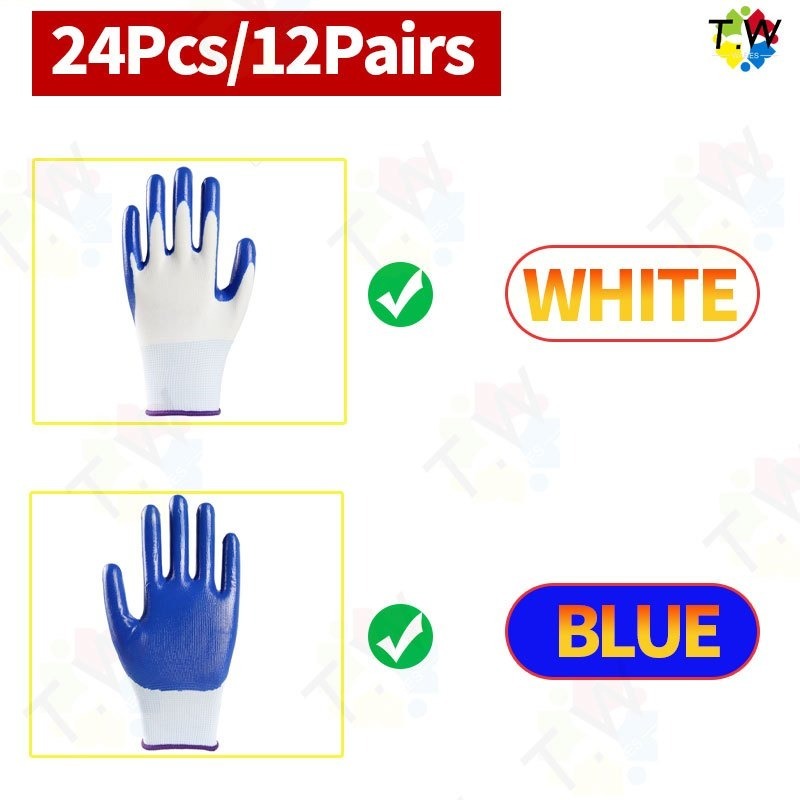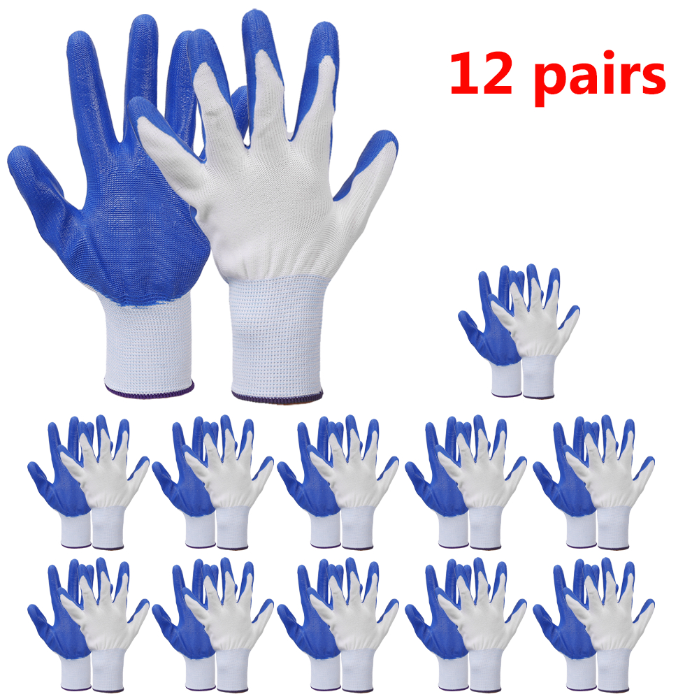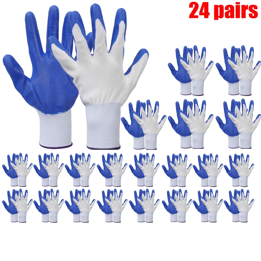 12/24Pairs Rubber Gloves No Slip Gwantes Work Nitrile Coated Heavy Duty Reusable Construction Garden