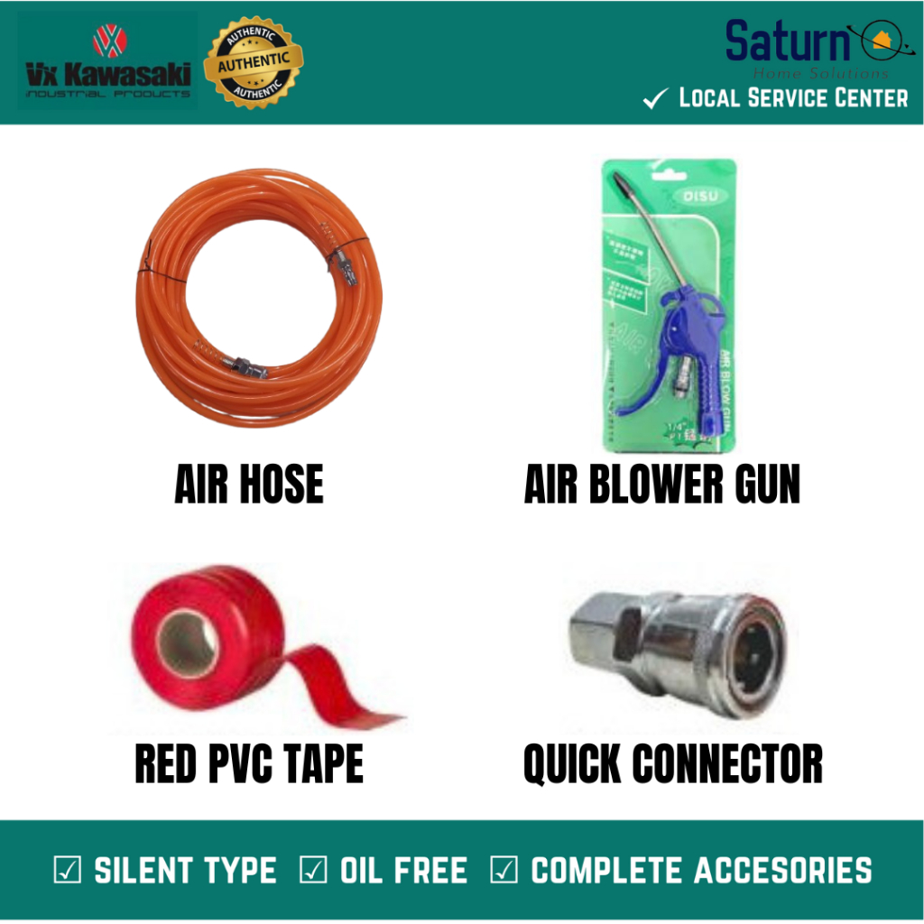 VX KAWASAKI VXC24L OIL-FREE 2HP AIR COMPRESSOR 8BAR Complete Accessories