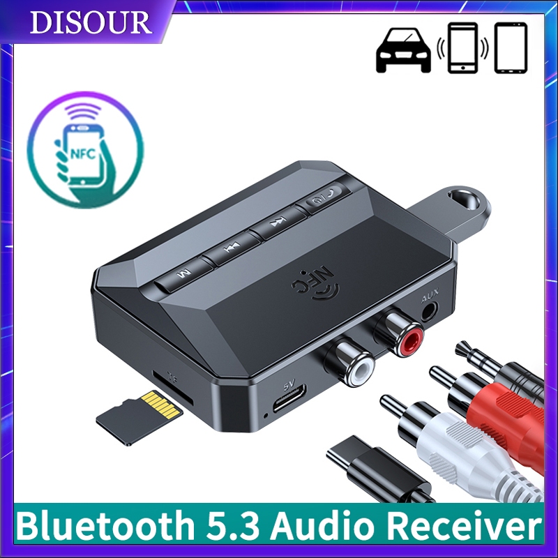NFC Bluetooth 5.3 Audio Receiver R/L RCA 3.5mm AUX USB Stereo Lossless Music Wireless Adapter Supports U Disk/TF Card Playback Car Speaker Amplifier