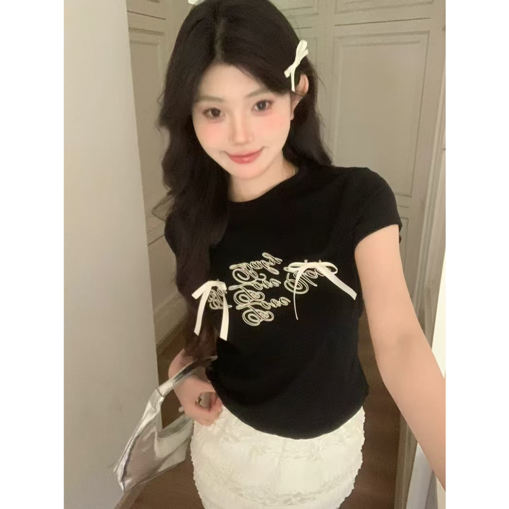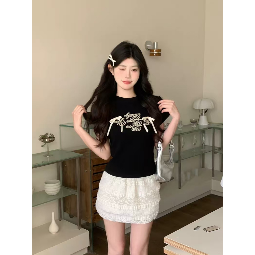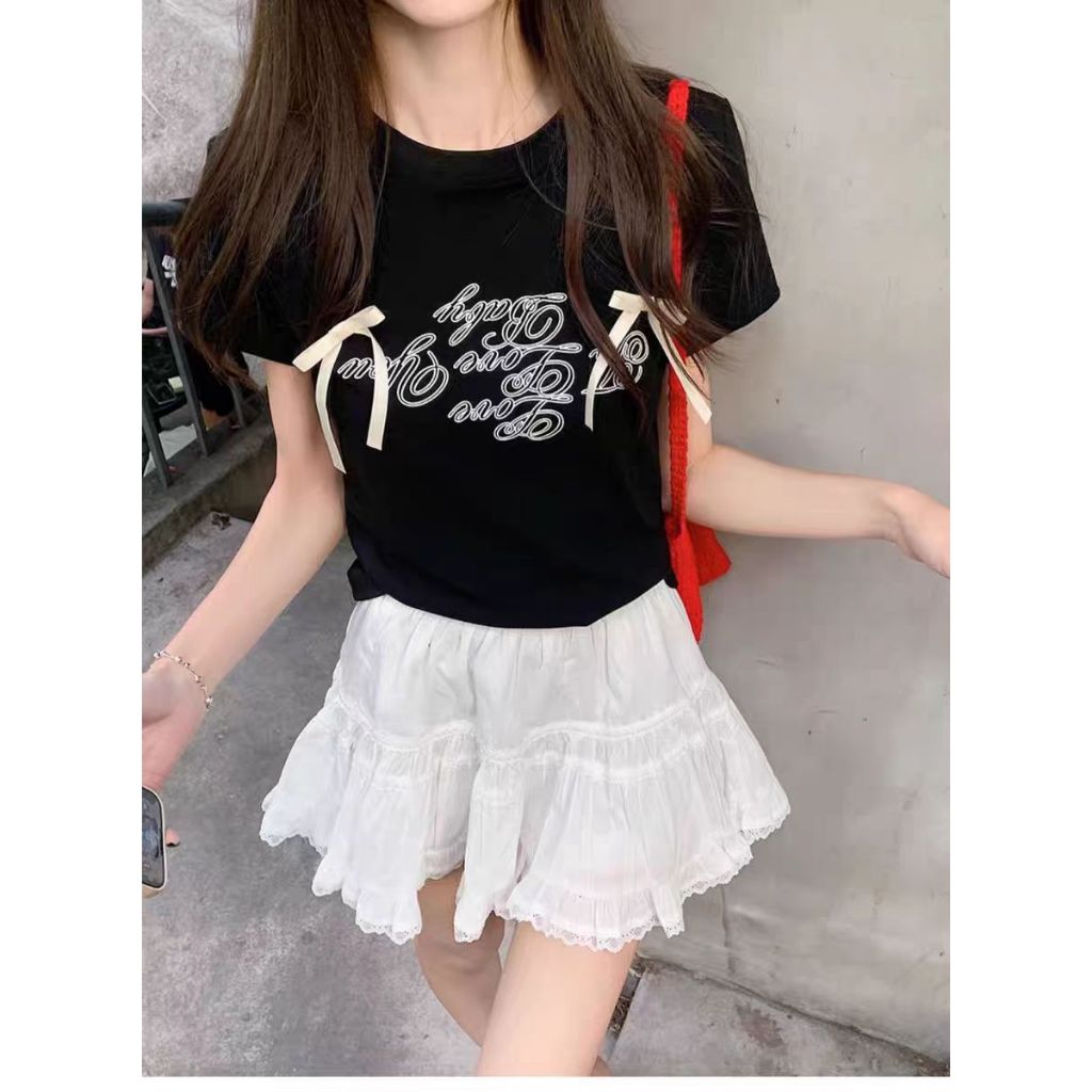 Riya Fashion Coquette high-quality Top for woman With ribbon cotton Round neck Semi crop Top 5532