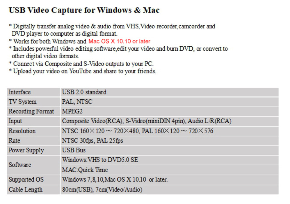Original EZCAP AV S-Video USB 2.0 Audio Video Capture Card Plate Converter Adapter DVD DVR VHS for Win7 /8 /win10 Mac OS X 10.10