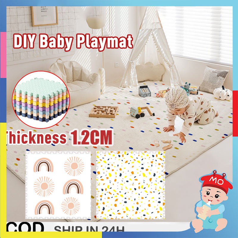 【Free Gift】Puzzle Mat 60x60 6pcs Big Size Play Mat for Baby Non-slip Foam Mat 1.2MThickness Crawling