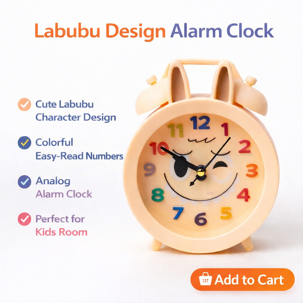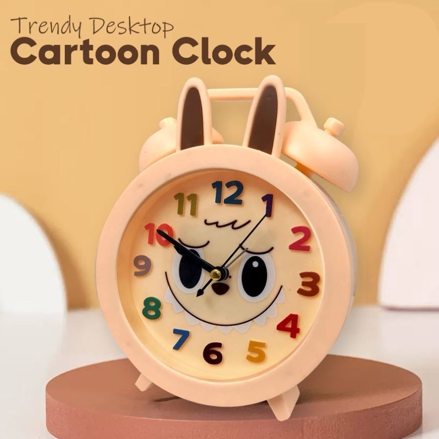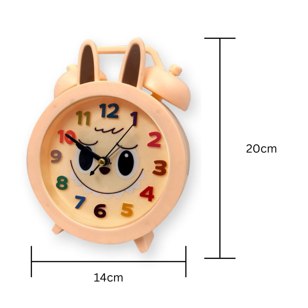 PD Labubu Inspired Big Desktop Analog Round Alarm Clock for Kids Bedroom Battery Operated Home Decor