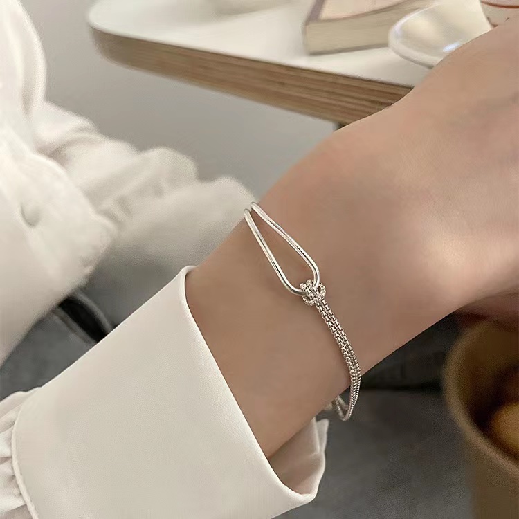 Stok sa Lokal✨Simple Design Knotted Sterling Silver Bracelet Female New Style Korean ins Niche Jewelry