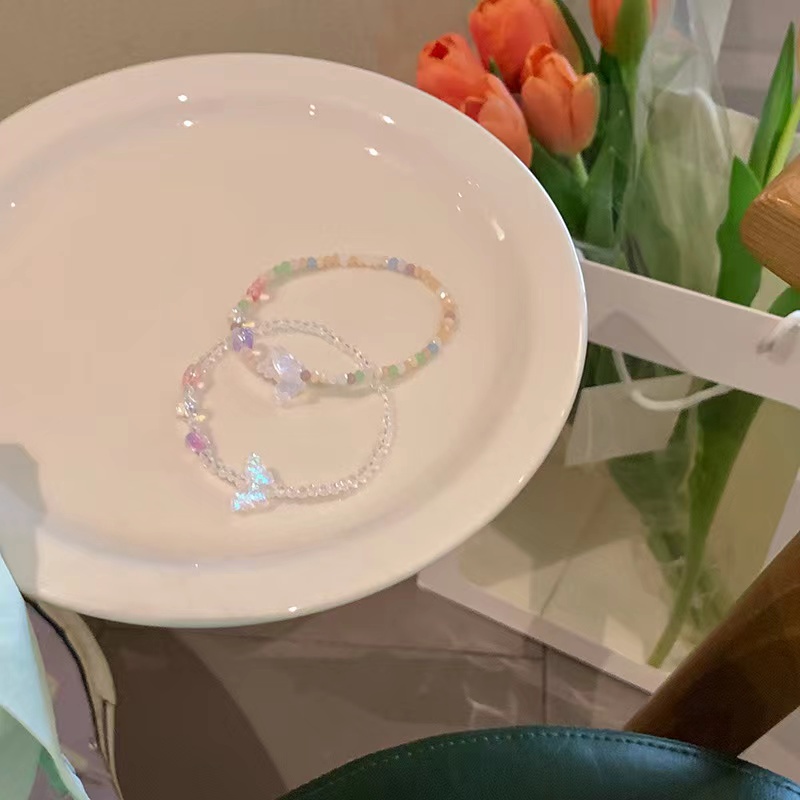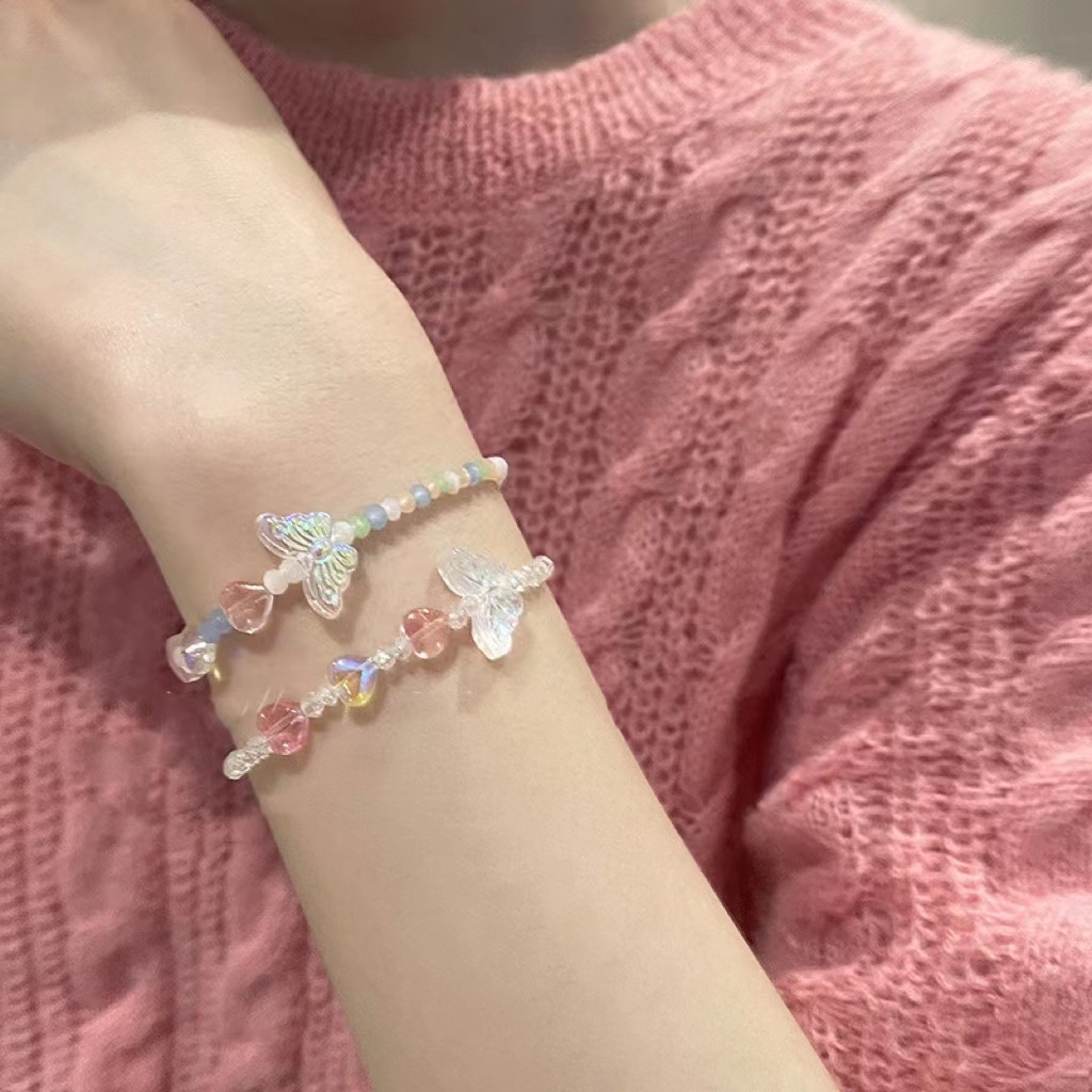 Colorful Beaded Acrylic Butterfly Bracelet Female ins Niche Design Simple All-Match Hand Rope Adjustable