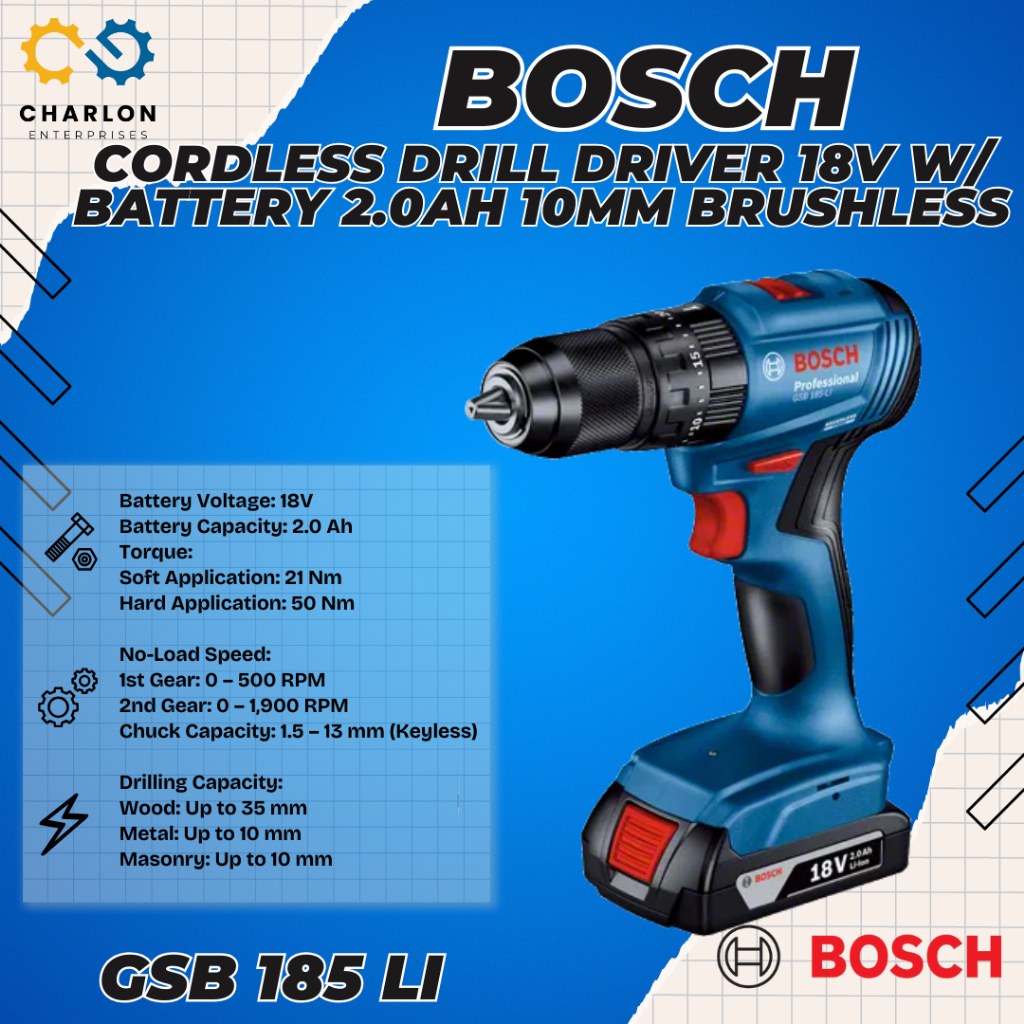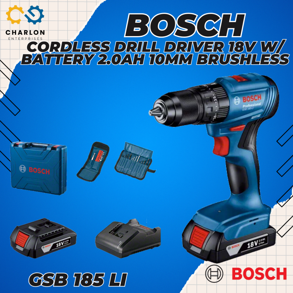 GSB 185-LI BOSCH CORDLESS DRILL DRIVER 18V WITH 2-PC BATTERY 2.0AH 10MM BRUSHLESS