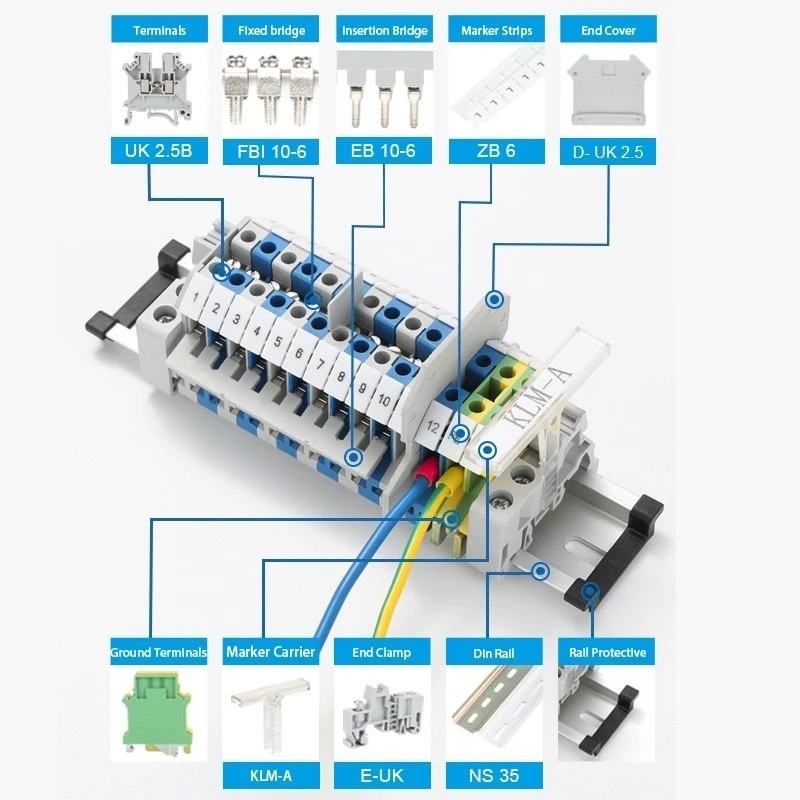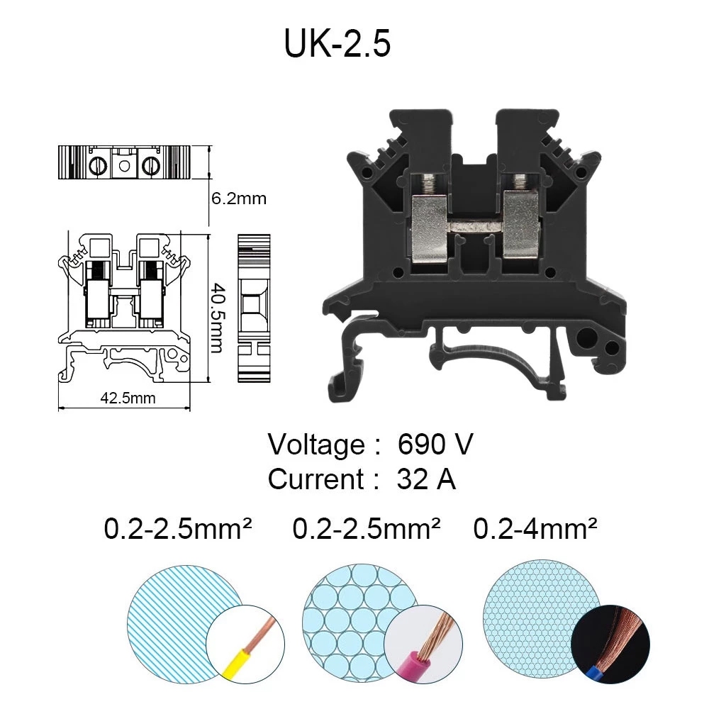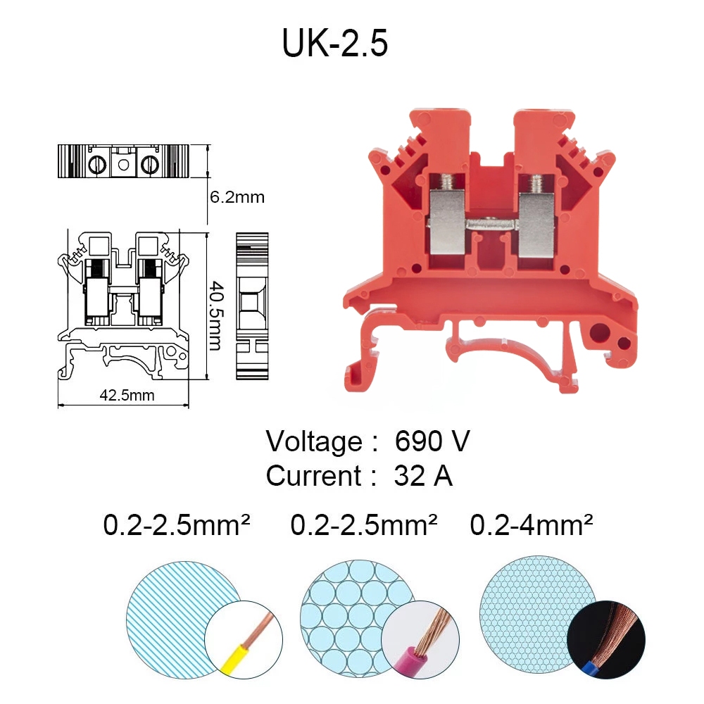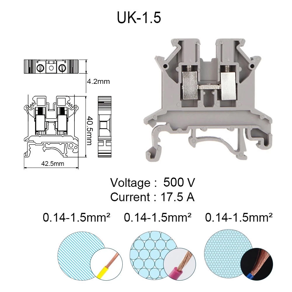 3H UK2.5B Blok Terminal Skru DIN Rail / DIN Rail Feed-Through Terminal Block Untuk Kabel Elektrik