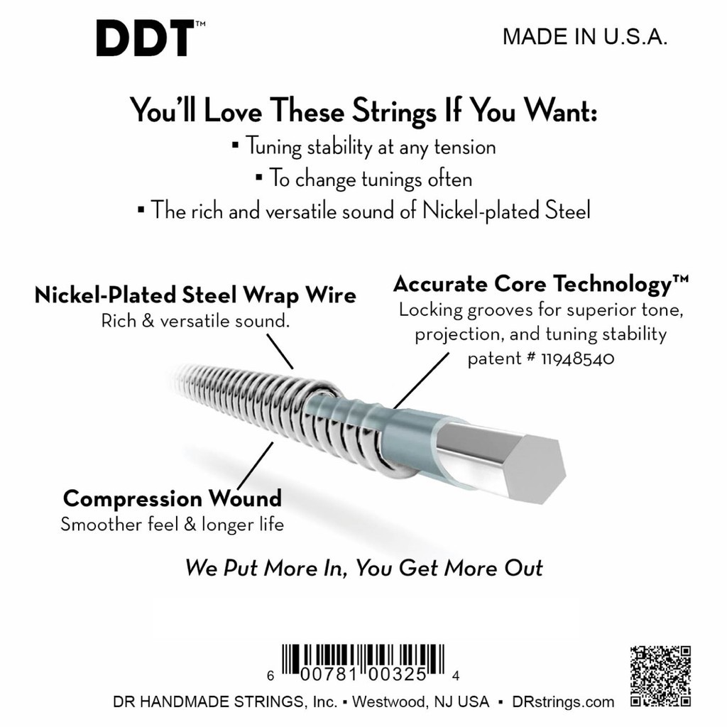 DR Strings DDT Drop Down Tuning Nickel Plated Electric Guitar Strings Coated Hex Core (Various Gauge)
