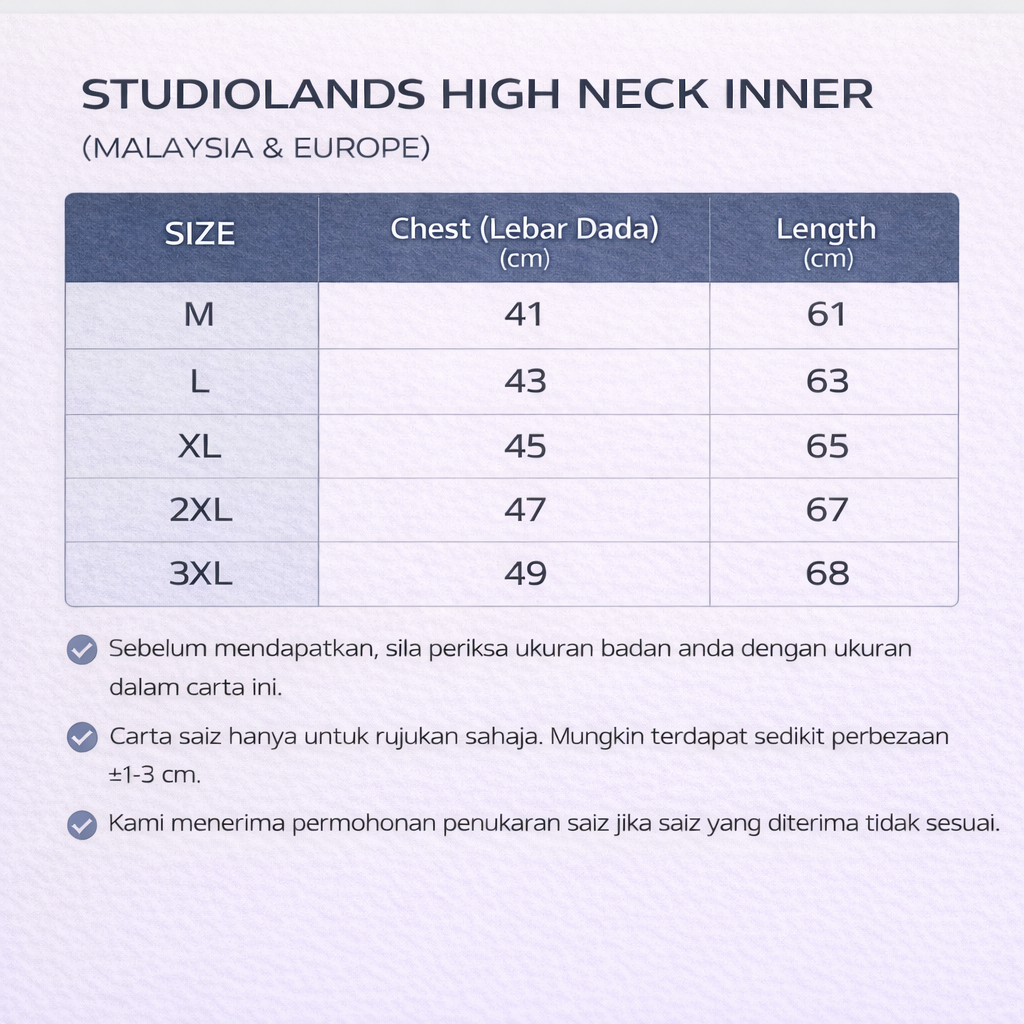 Studiolands Long Sleeve High Neck Muslimah Inner 半高领内衬上衣 Long Sleeve Muslim Top