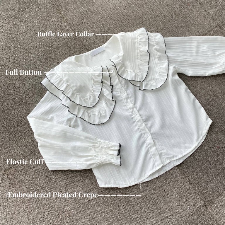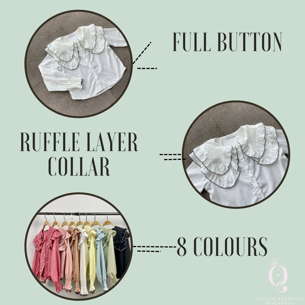 QFM Juwita Pleated Ruffle Top (1520) Blouse Comel