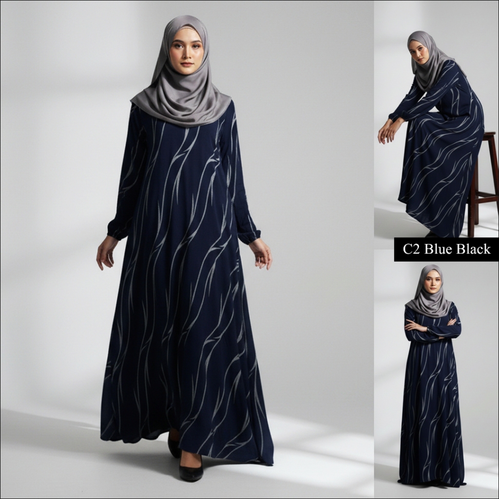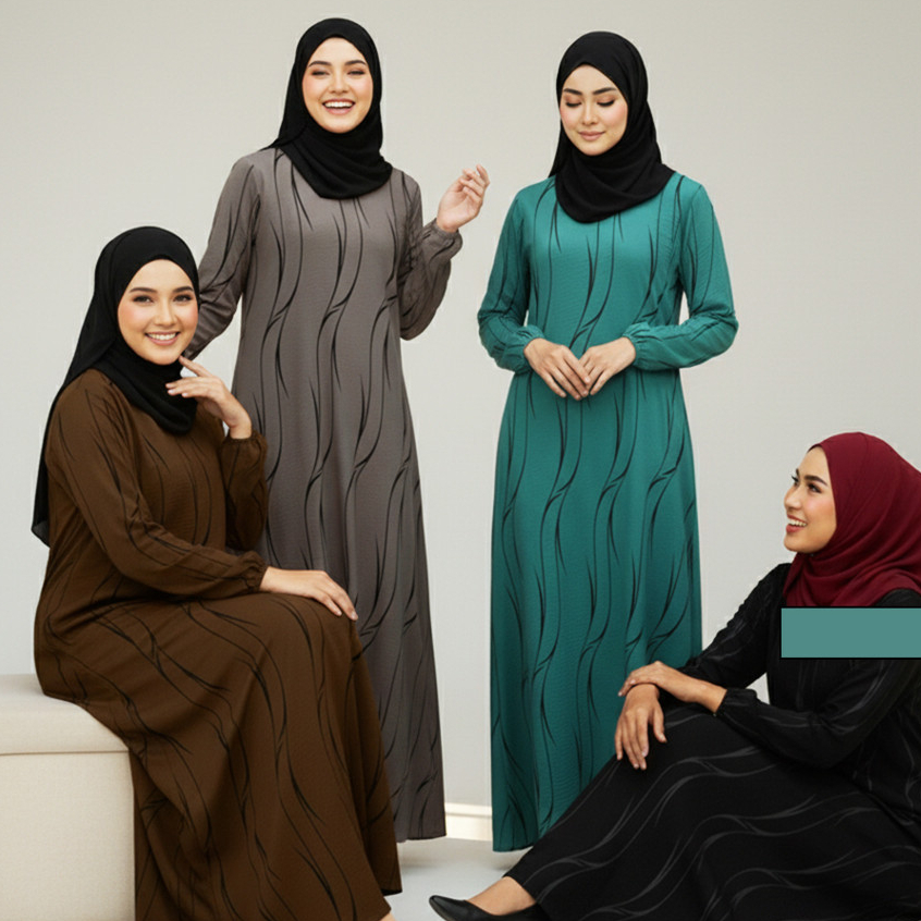 Jubah Muslimah Melati Ironless Premium CEY – 5 Warna Eksklusif, Zip Depan, Saiz M–3XL