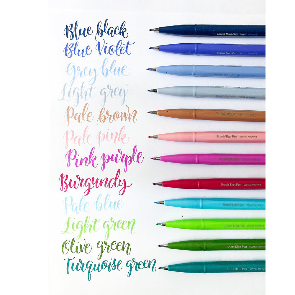[PASTEL COLORS] Pentel Fude Touch Brush Sign Pen Calligraphy Pen