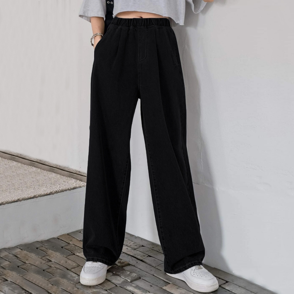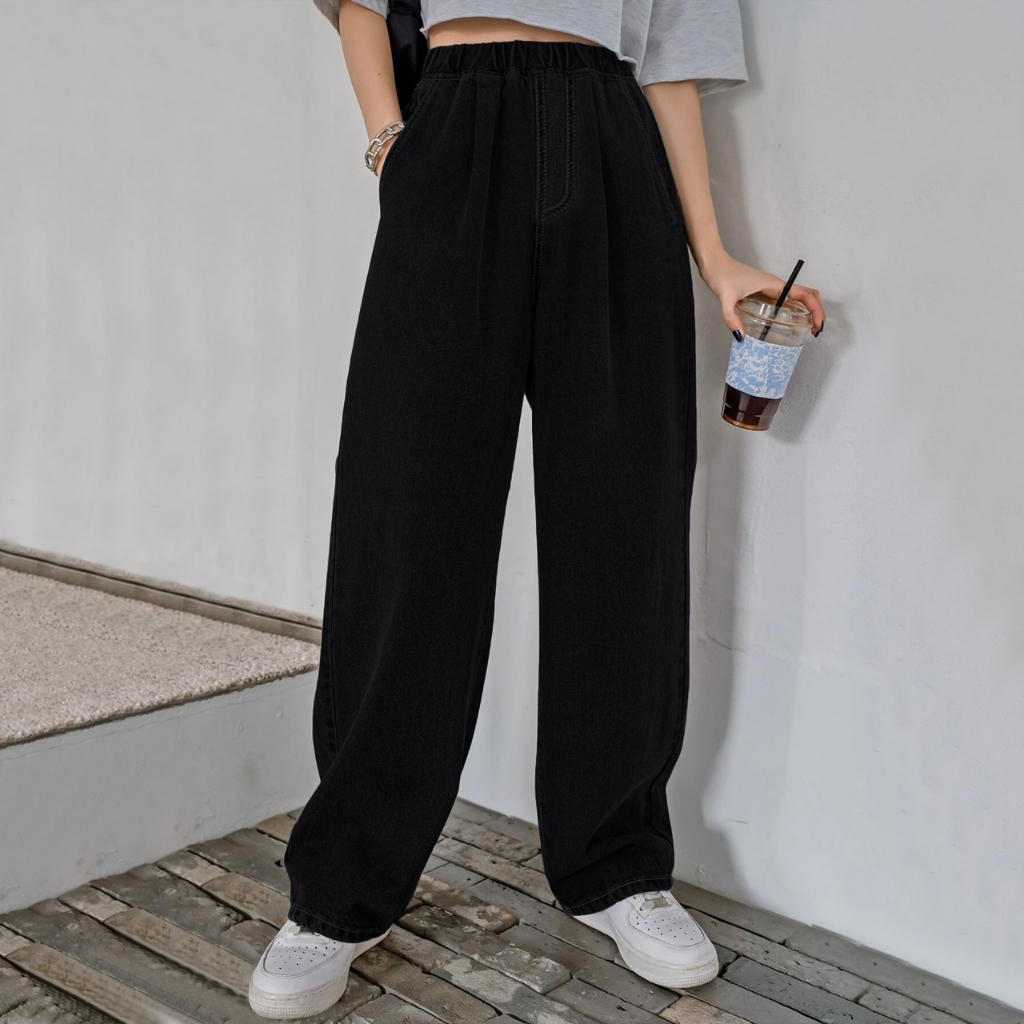 CLASHE Straight Cut Jeans Plus Size Wanita Hitam Cutbray Panjang Celana Denim Jeans