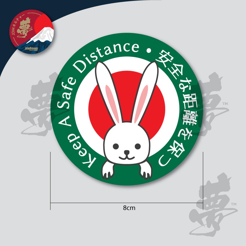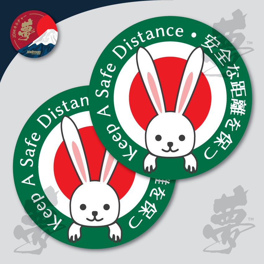 2IN1 JDM JAF Japan Rabbit Safety Driving Keep A Safe Distance Sticker Set Honda Toyota Nissan Mazda Daihatsu Mitsubishi
