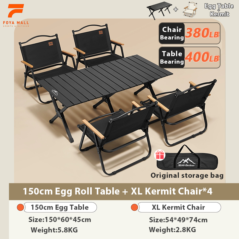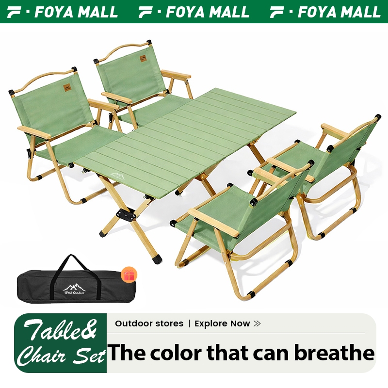 【FOYA】Camping table, camping chairs, Green camping set for 2-4 people Folding tables and chairs