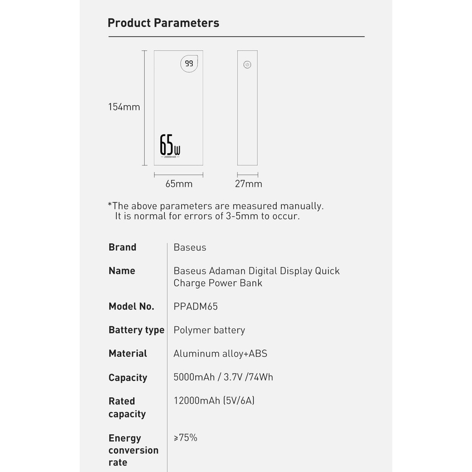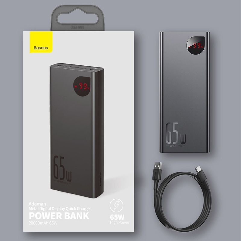 [ Local Stock ] Baseus 65W Power Bank 20000mAh Portable Fast Charging Powerbank Type C PD Qucik Charge Poverbank External Battery Charger