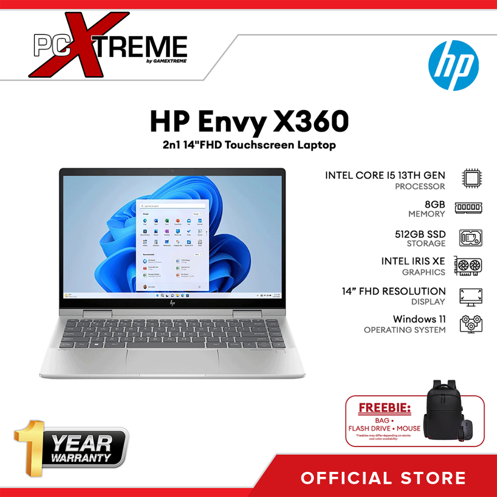 HP Envy x360 2n1 14"FHD Touchscreen Laptop i5-1335U 8GB/512GB SSD Win 11 SIlver 14-0013dx