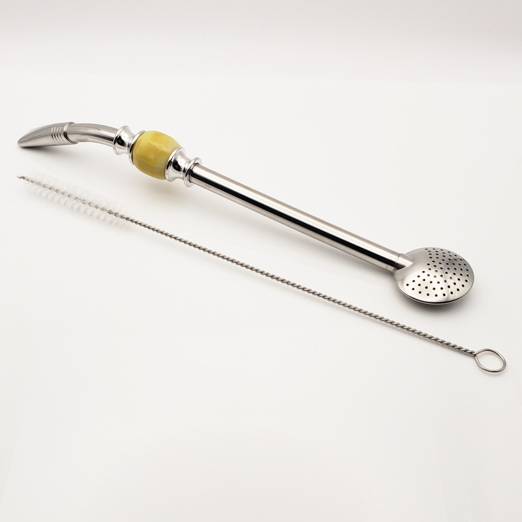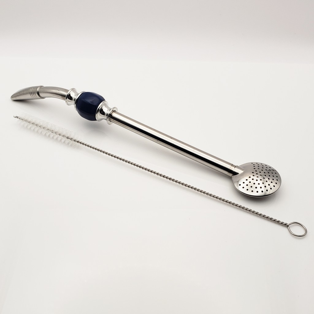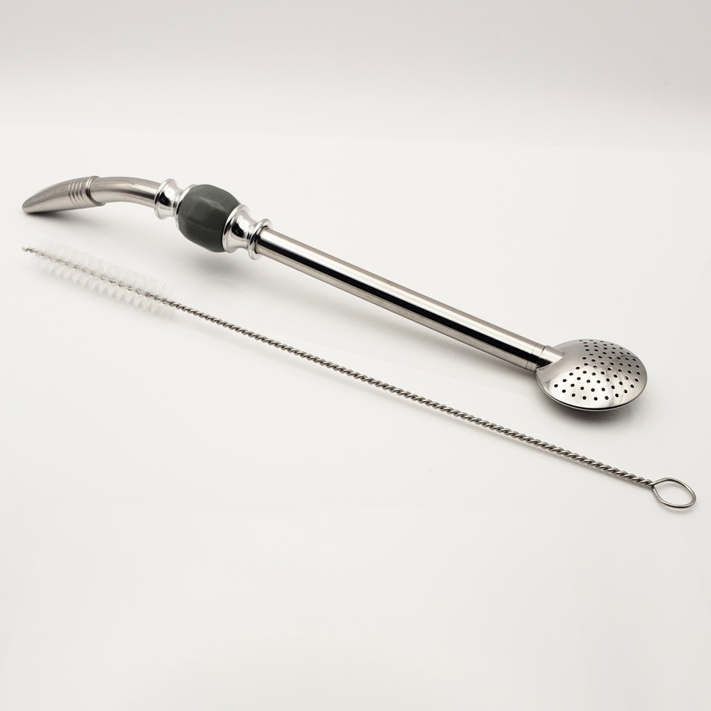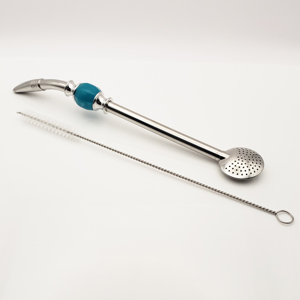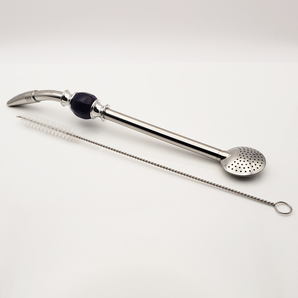Yerba Mate Long Bead Bombilla / Bombisha Metal Steel Straw Filter with Cleaner